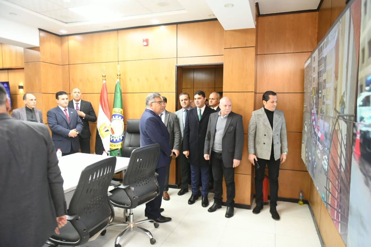 رافق المحافظ من غرفة عمليات المحافظة بالديوان العام، اللواء عماد عبد الله السكرتير العام، اللواء عماد الدكروري السكرتير العام المساعد، والعميد الهيثم عواد المستشار العسكري، محسن طه مدير عام الإدارة العامة للمجالس واللجان و أحمد حمدي مدير الشبكة الوطنية، والقيادات الأمنية، ومديرو المديريات المعنية، وأعضاء الغرفة الخاصة بالانتخابات من مديري عموم الإدارات المختصة بديوان المحافظة، ورؤساء قطاعات الخدمات.