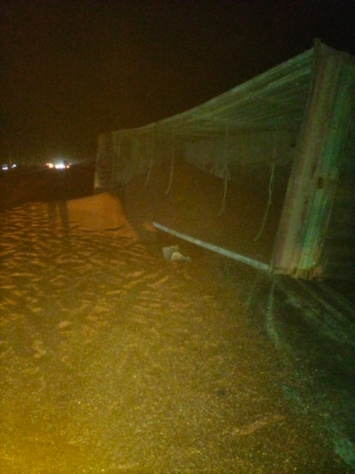 شهدت محافظة كفر الشيخ، اليوم، انقلاب سيارة نقل ثقيل «تريلا»، محملة بكميات كبيرة من الفول على الطريق الساحلي الدولي بنطاق مركز بلطيم.