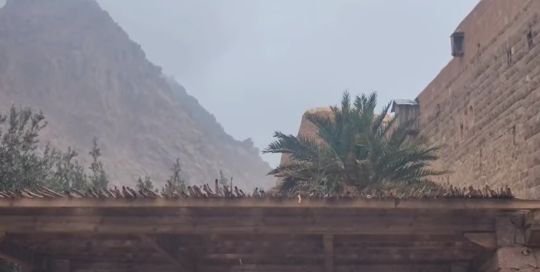 ورصدت كاميرا موقع «صدى البلد» الإخباري الأمطار الخفيفة والسحب الكثيفة التي غلّفت جبال سانت كاترين، إلى جانب انخفاض ملحوظ في درجات الحرارة، خاصة على قمة جبل سانت كاترين، التي تنخفض فيها الحرارة أحيانًا إلى ما دون الصفر.