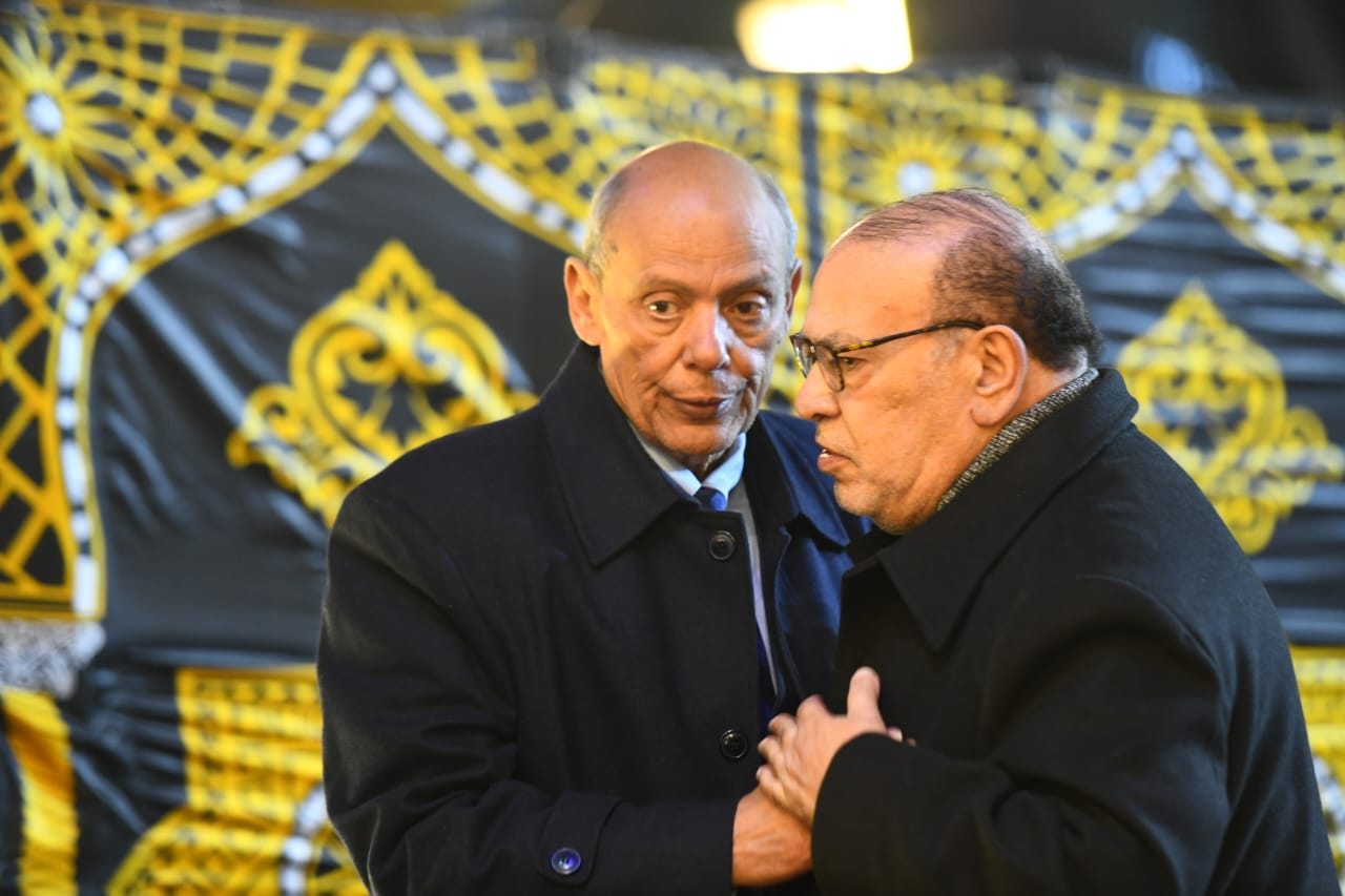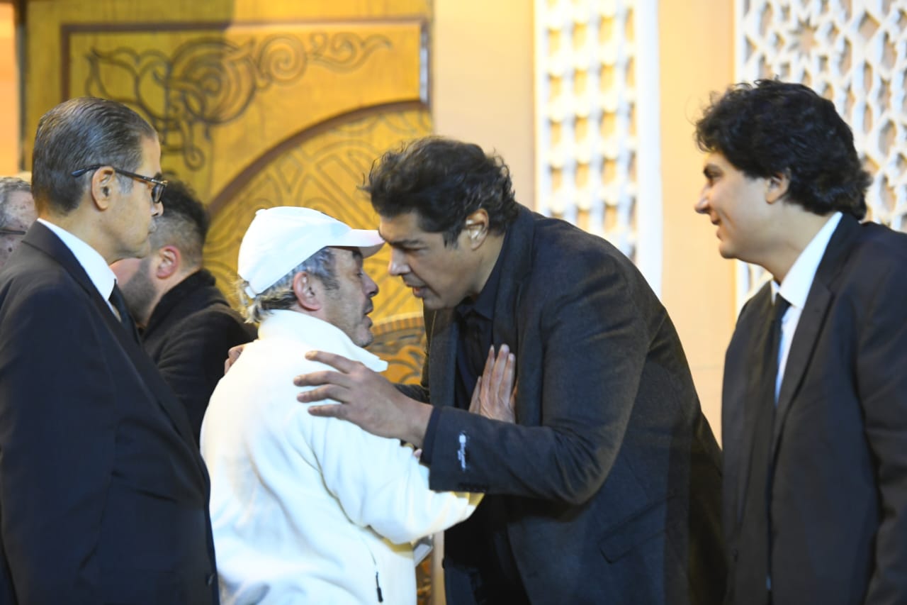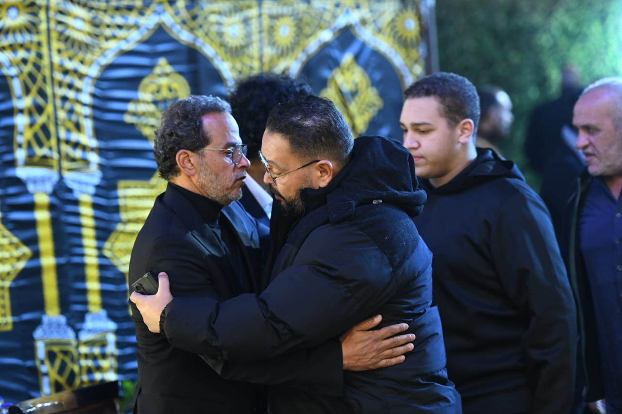 كما تواجد نجليه في مسجد الشرطة بالشيخ زايد، رامى عادل إمام، ومحمد إمام، وحضر أيضًا الفنان خالد ذكى والنجمة لبلبة، ومجموعة آخرين من المقربين.