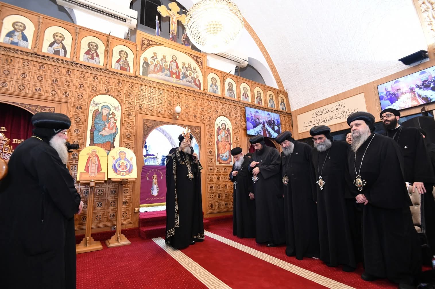 وكالعادة استقبل الشعب قداسة البابا لدى دخوله الكنيسة بحفاوة بالغة وبادلهم قداسته التحية، بينما رتل خورس الشمامسة ألحان استقبال الأب البطريرك، حيث صلى صلاة العشية بمشاركة الآباء الأساقفة الحاضرين، وكهنة كنائس "شرق السكة الحديد".