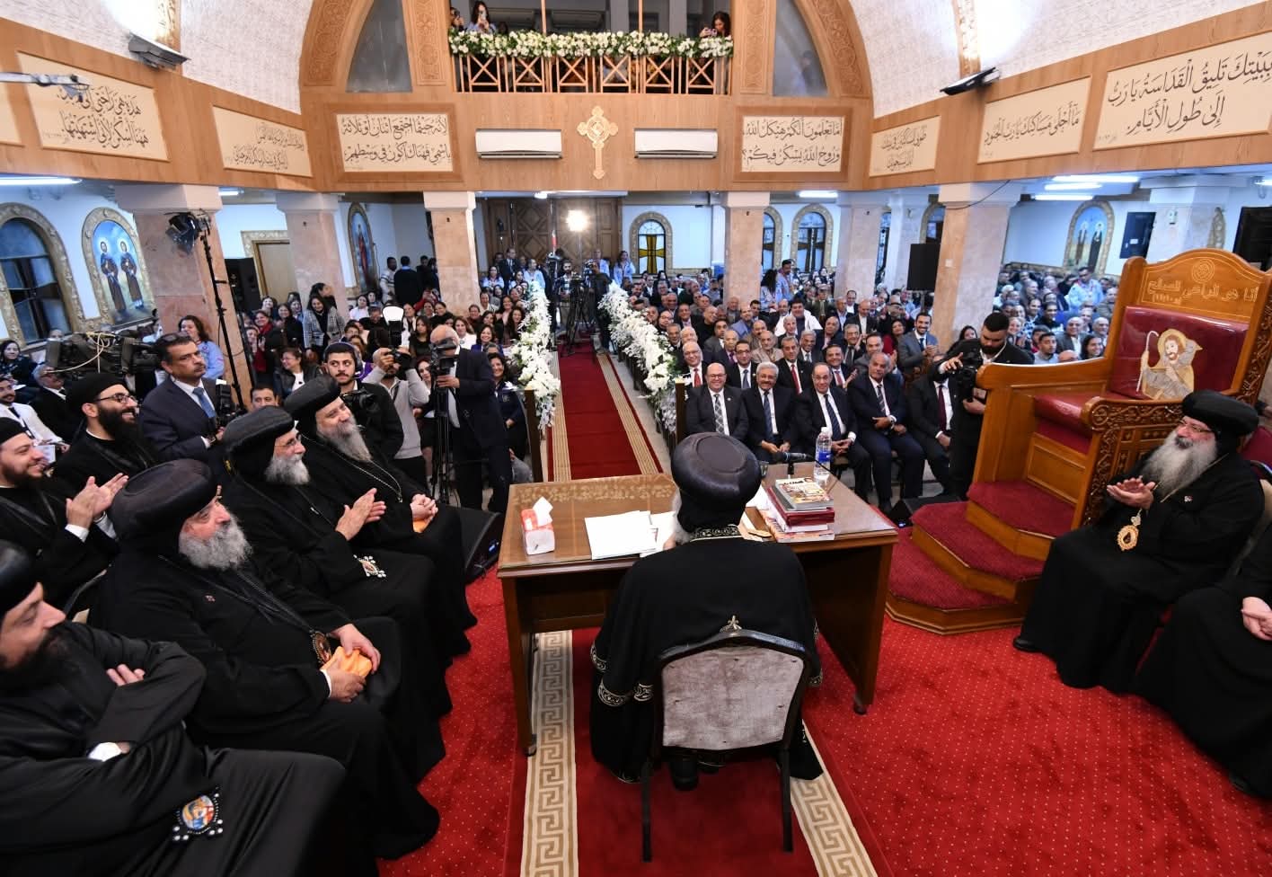 وألقى نيافة الأنبا مارتيروس كلمة ترحيبًا بقداسة البابا ورتل كورال شباب الكنيسة عددًا من الترانيم. وألقى القمص باخوميوس حكيم كلمة عبر خلالها عن مشاعر الفرح التي تسود الكنيسة وكهنتها وشعبها بزيارة قداسة البابا. وعرض فيلم وثائقي "ستون عامًا من الرعاية" عن تاريخ الكنيسة وخدماتها وآبائها وخدامها. وفيلم آخر عن منتجات دار الكتاب المقدس.