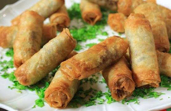 ـ يُوضع مقدار من حشو الخضار على طرف الجلاش، ثم يُلف على شكل رول.