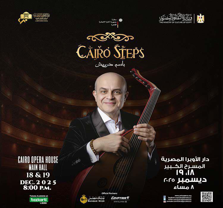 تقيم دار الأوبرا المصرية برئاسة الدكتور علاء عبد السلام بالتعاون مع سفارة جمهورية ألمانيا الإتحادية بالقاهرة حفلين للفريق المصرى الألمانى كايرو ستيبس بقيادة مؤسسة الموسيقار باسم درويش وذلك فى الثامنة مساء يومى الخميس والجمعة 18، 19 ديسمبر على المسرح الكبير .