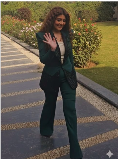 تألقت مي كساب في الصور بإطلالة رسمية كشفت عن رشاقتها مما أثار الجدل بين متابعيها على السوشيال ميديا، حيث ارتدت بنطلون باللون الزيتي مع بليزر بنفس اللون.