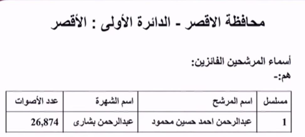 وأضاف بإبطال اللجنتين رقمى 40 التابعة للدائرة التاسعة بقسم الأهرام واللجنة 49 التابعة للدائرة السابعة بقسم العمرانية، لما شابهما من عيب جوهرى أثر فى مشروعية إجراءات الفرز مع استبعاد بطاقات التصويت لهاتين اللجنتين دون أن يؤثر ذلك على الدائرة الانتخابية التابعة لكل منهما واعتماد النتائج الرسمية التى جاءت على النحو التالى: