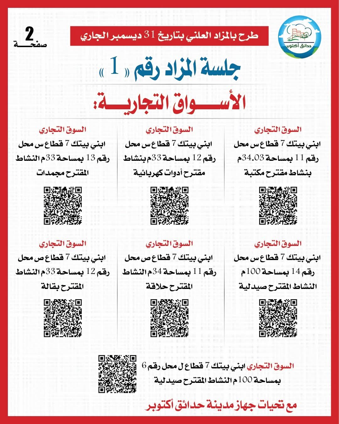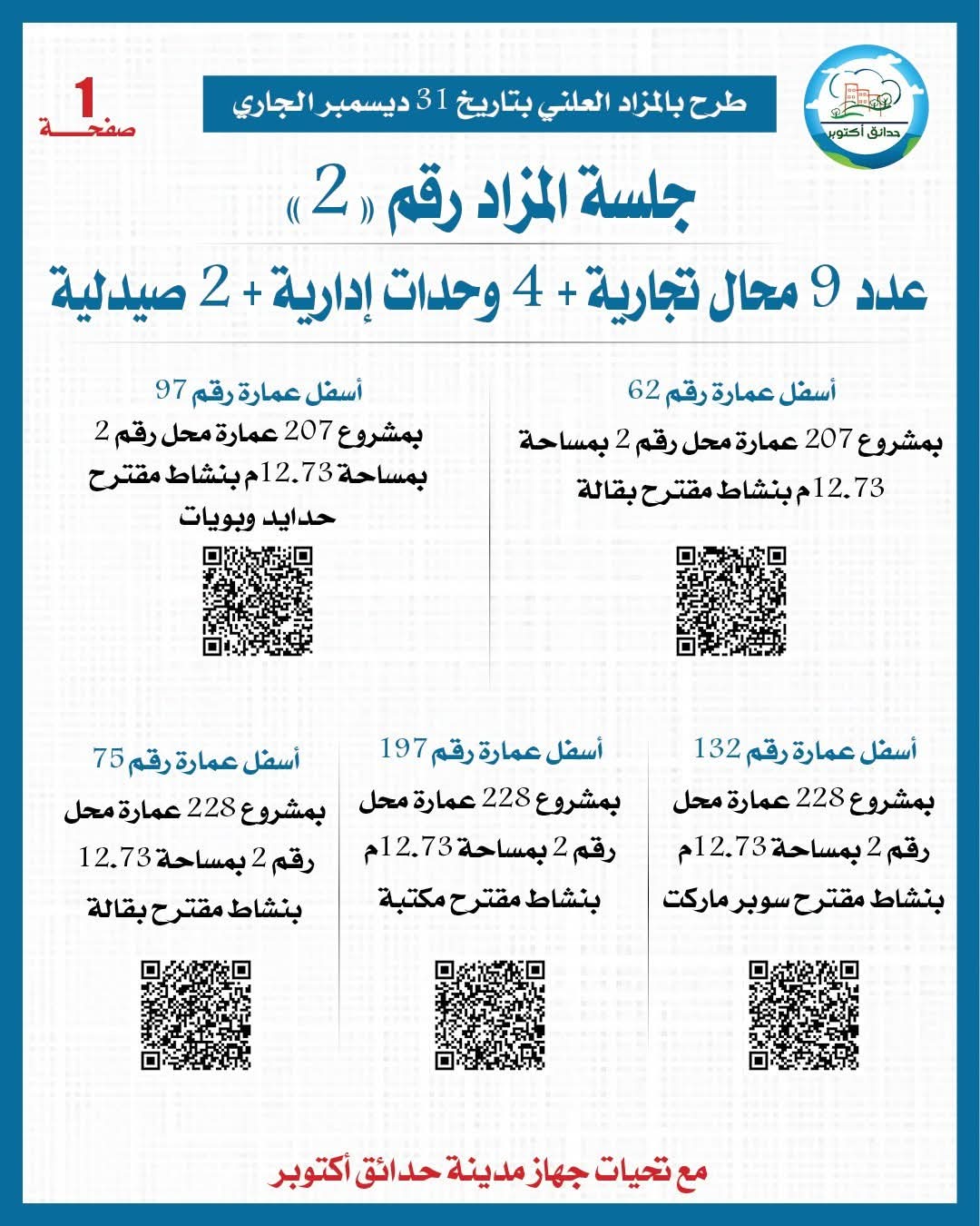 جلسة المزاد رقم (2) عدد 9 محال تجارية + 4 وحدات إدارية + 2 صيدلية