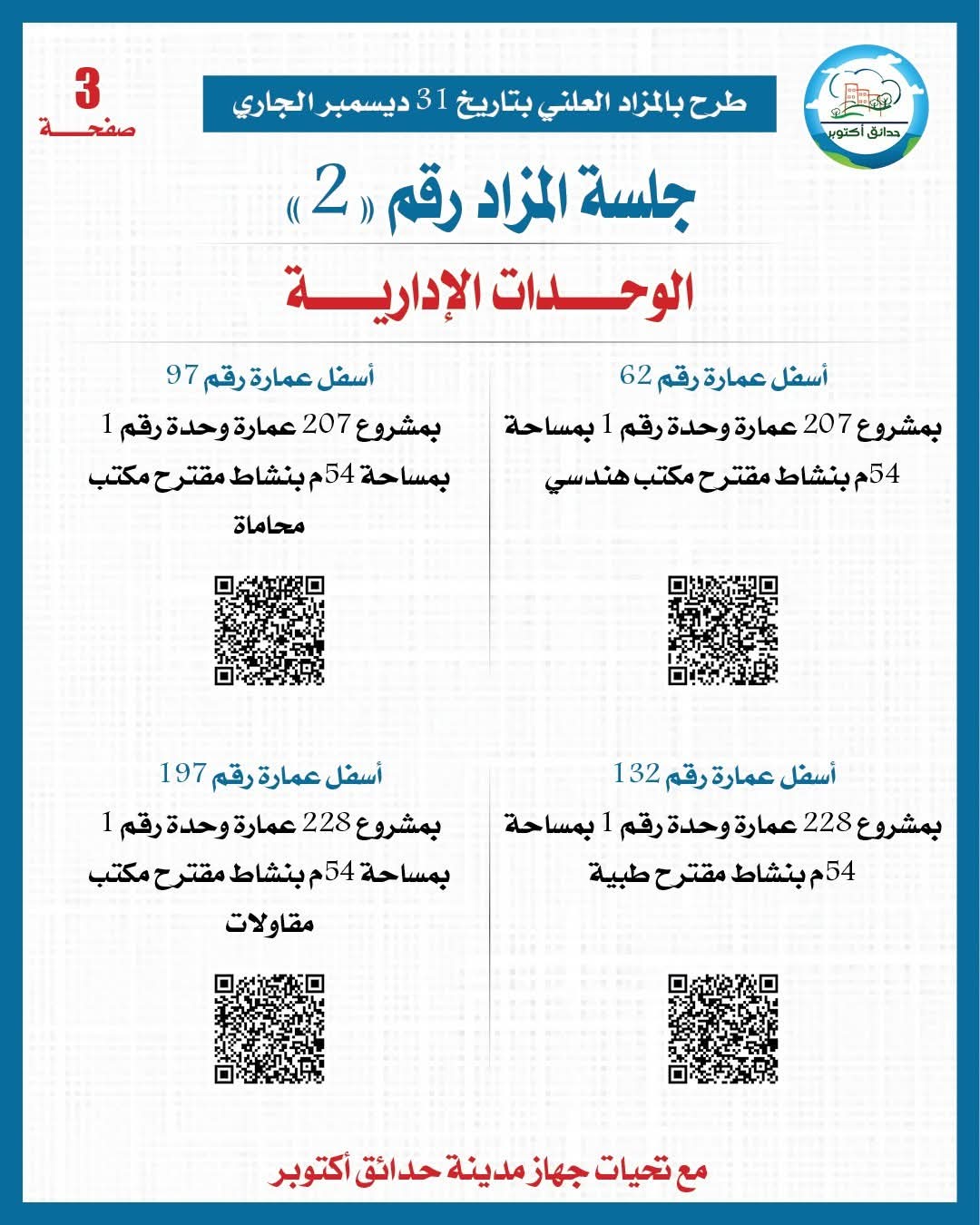 3ـ أسفل عمارة رقم 132 بمشروع 228 عمارة وحدة رقم 1 بمساحة 54م بنشاط مقترح طبية