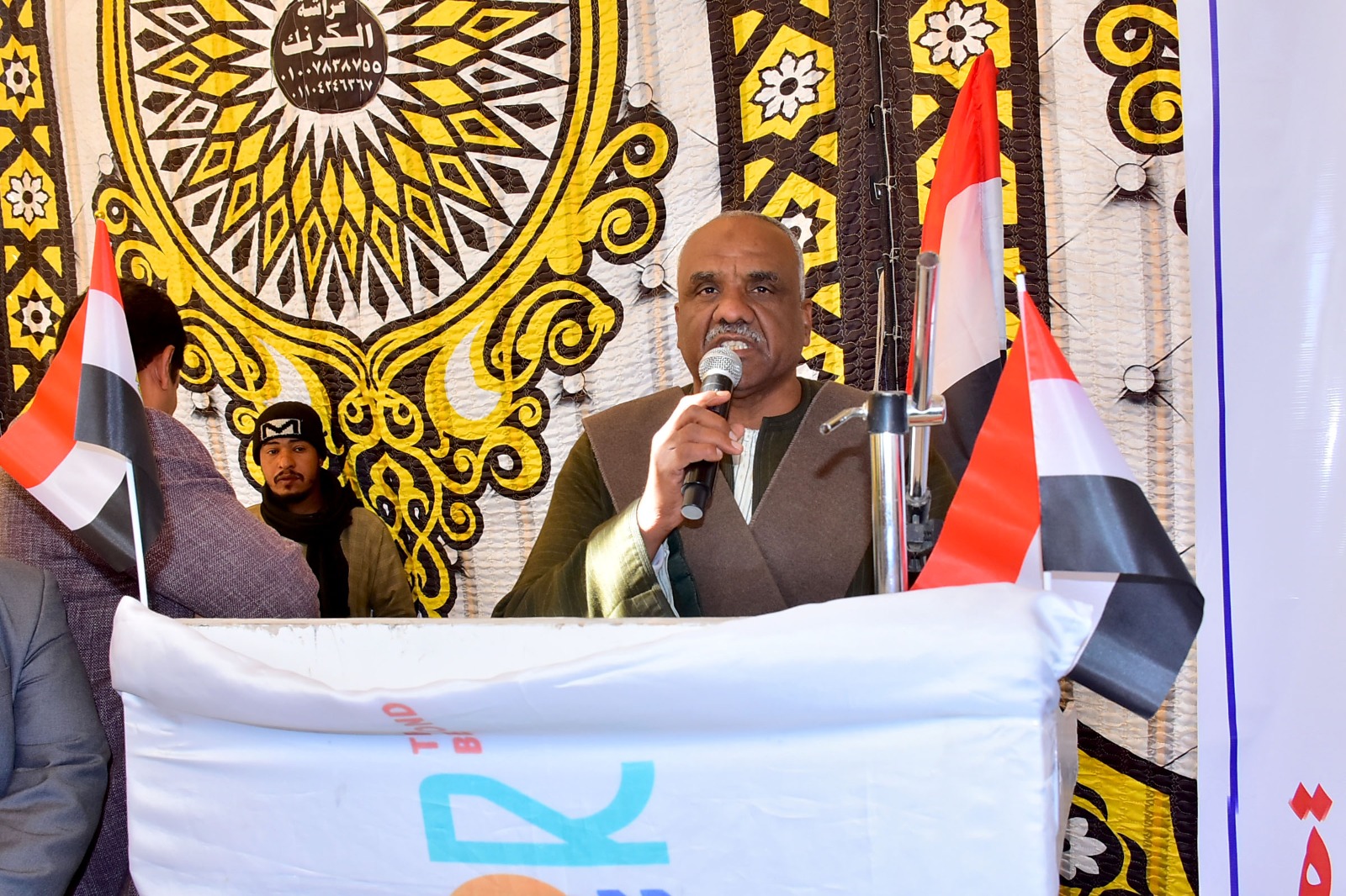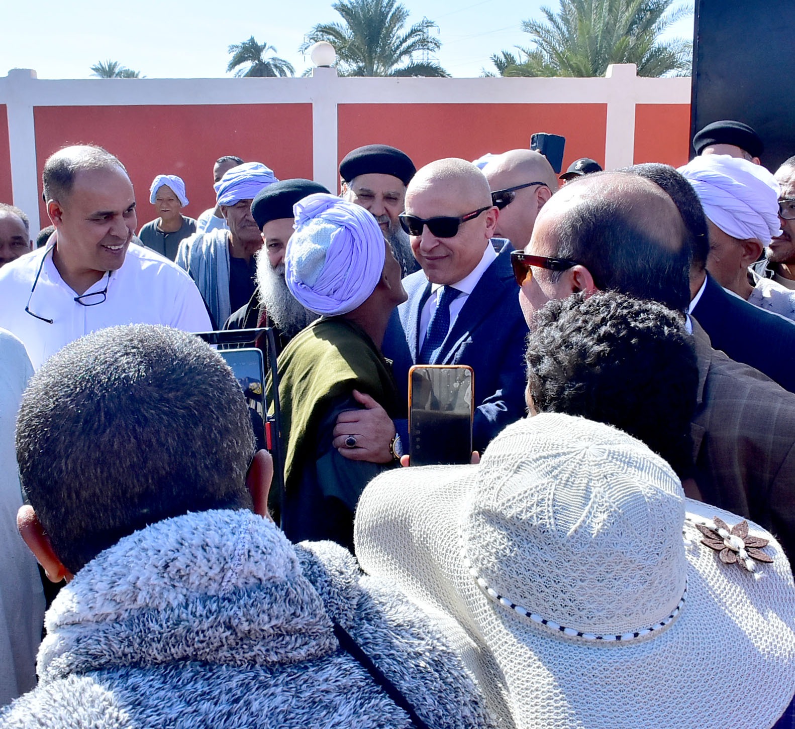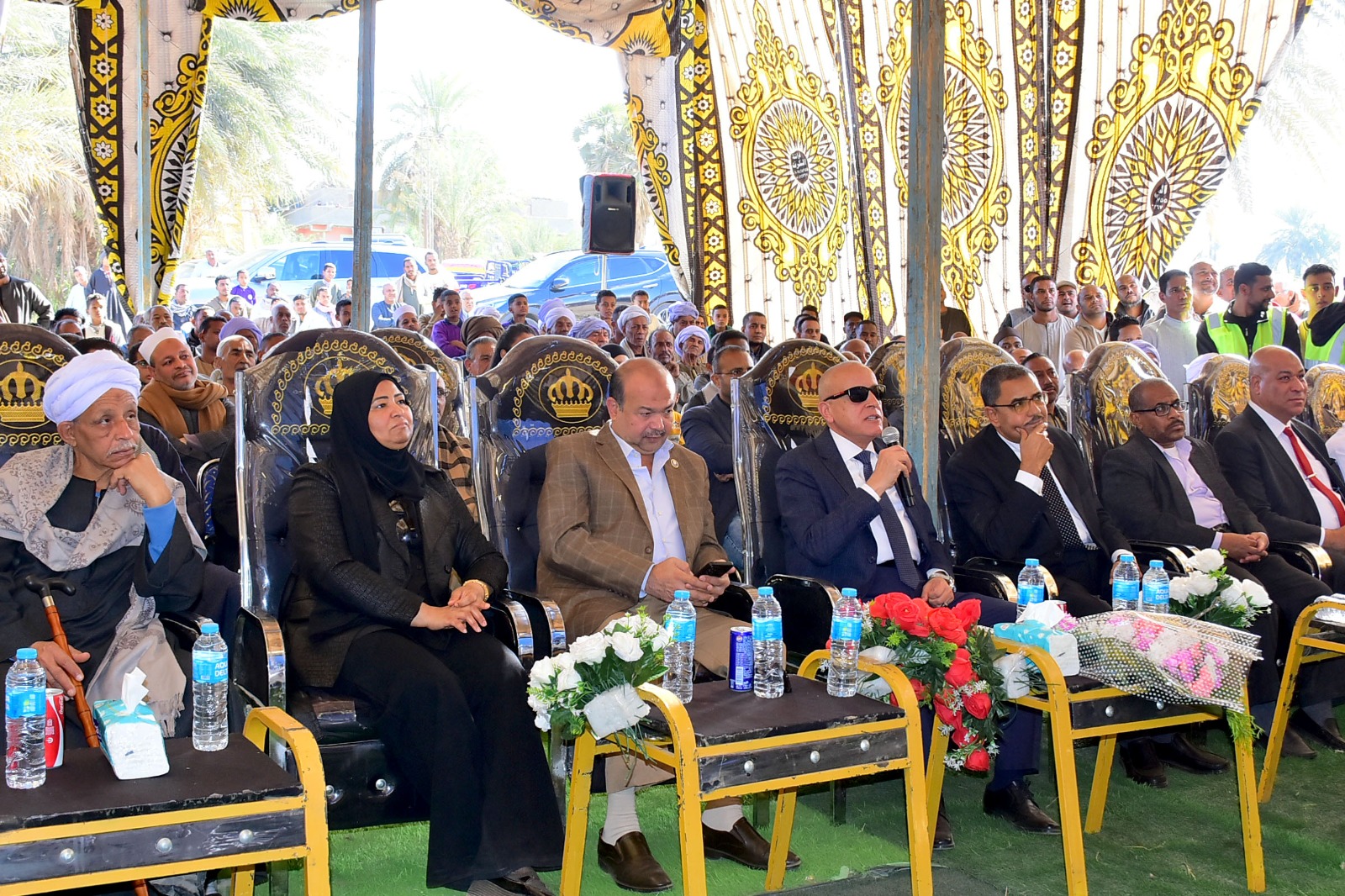 وخلال كلمته، وجّه محافظ الأقصر التحية لفخامة الرئيس عبد الفتاح السيسي رئيس الجمهورية، صاحب مبادرة تطوير قرى الريف المصري حياة كريمة، كما زفّ بشرى لأهالي القرية بقرب رصف الطريق الزراعي، مؤكدًا أن الصرف الصحي هو أساس التنمية الحقيقية. وأضاف أنه سيتم رصف الطرق الرئيسية، فيما ستُغطّى الطرق الفرعية ببلاط الإنترلوك.