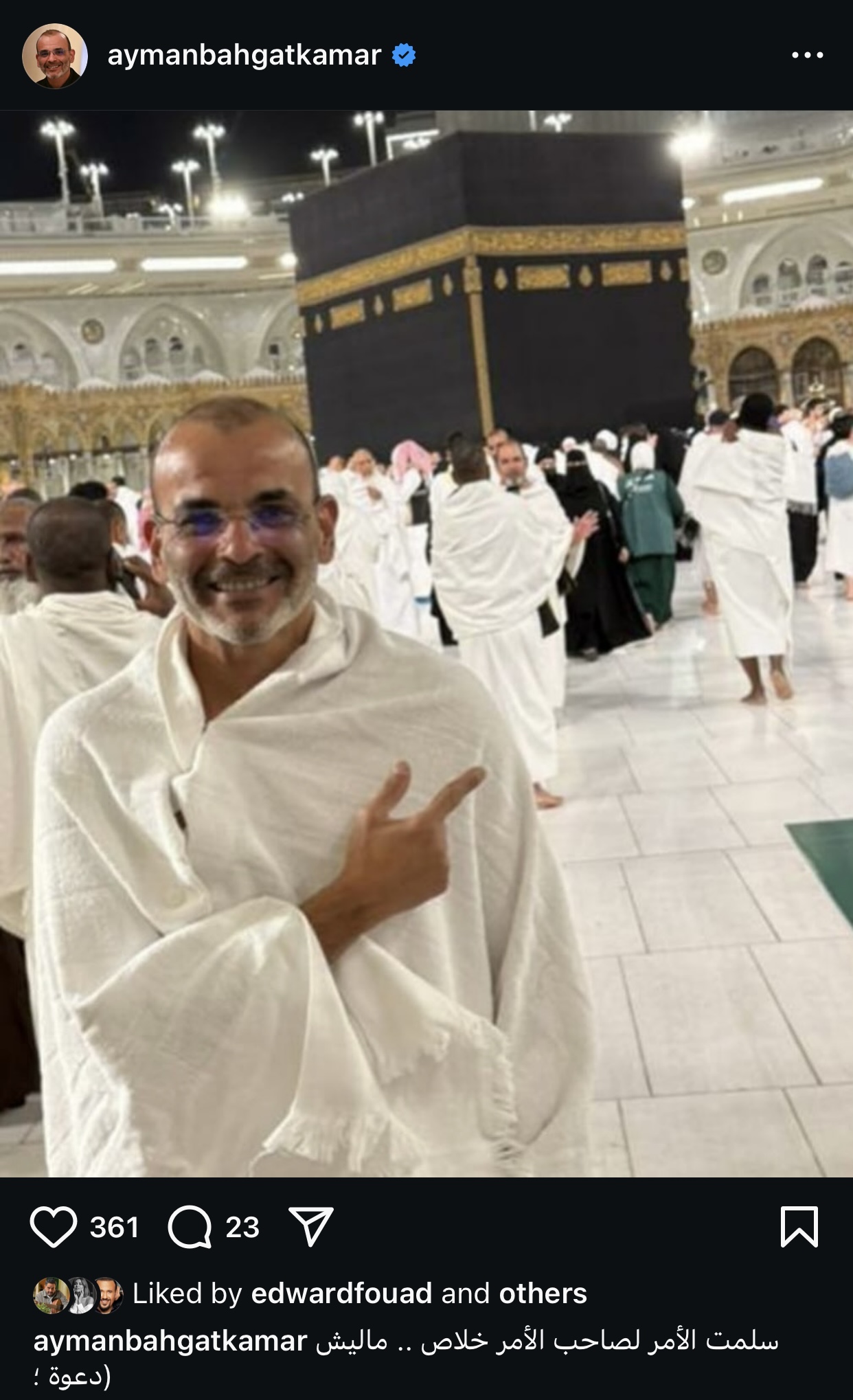 شارك الشاعر الغنائي أيمن بهجت قمر، صورة له عبر حسابه الشخصي بموقع فيسبوك، من أمام الكعبة المشرفة أثناء أداءه لمناسك العمرة.
