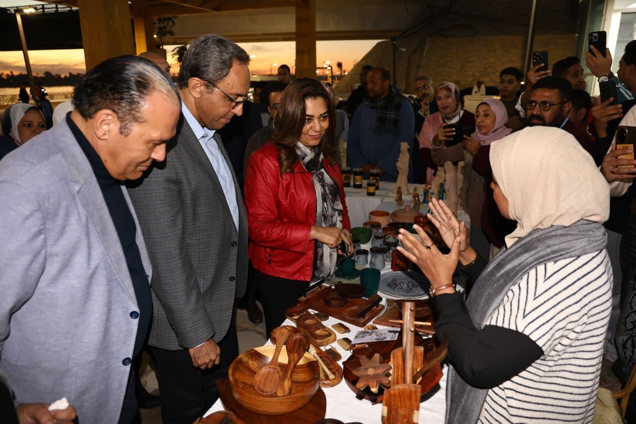كما قامت وزيرة التنمية المحلية والمحافظ بتفقد معرض الحرف اليدوية التراثية لتكتلات قنا، المقام علي منطقة الكورنيش حيث يضم المعرض مجموعة من المنتجات المتميزة التي تعكس تراث قنا في حرف مثل الفركة والفخار والمنتجات الخشبية المصنعة من خشب السرسوع والعسل الأسود .