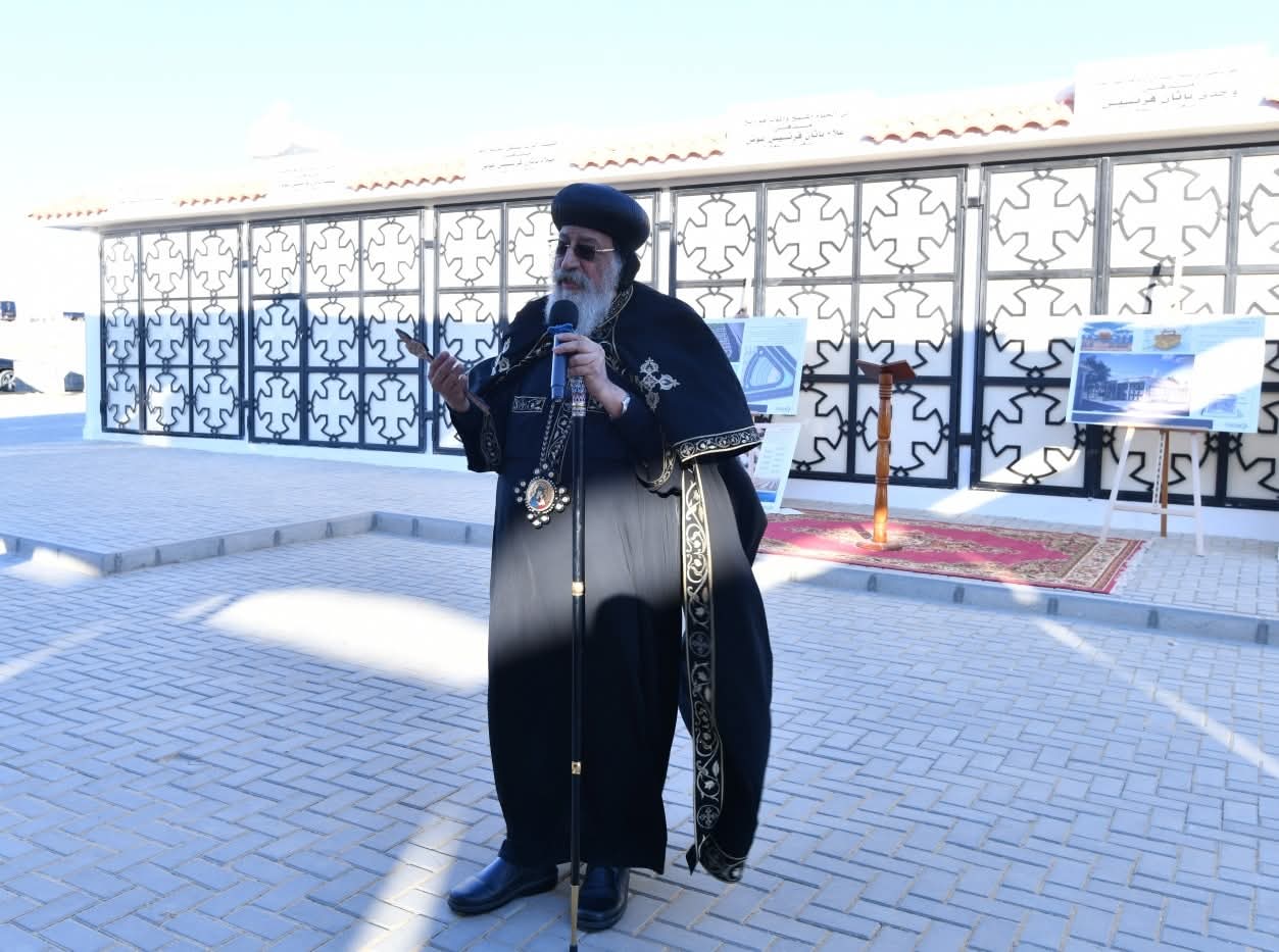 وفي كلمته عرض قداسة البابا لمراحل الترخيص والتخطيط والبناء مقدمًا الشكر لكل العاملين في هذا المشروع.