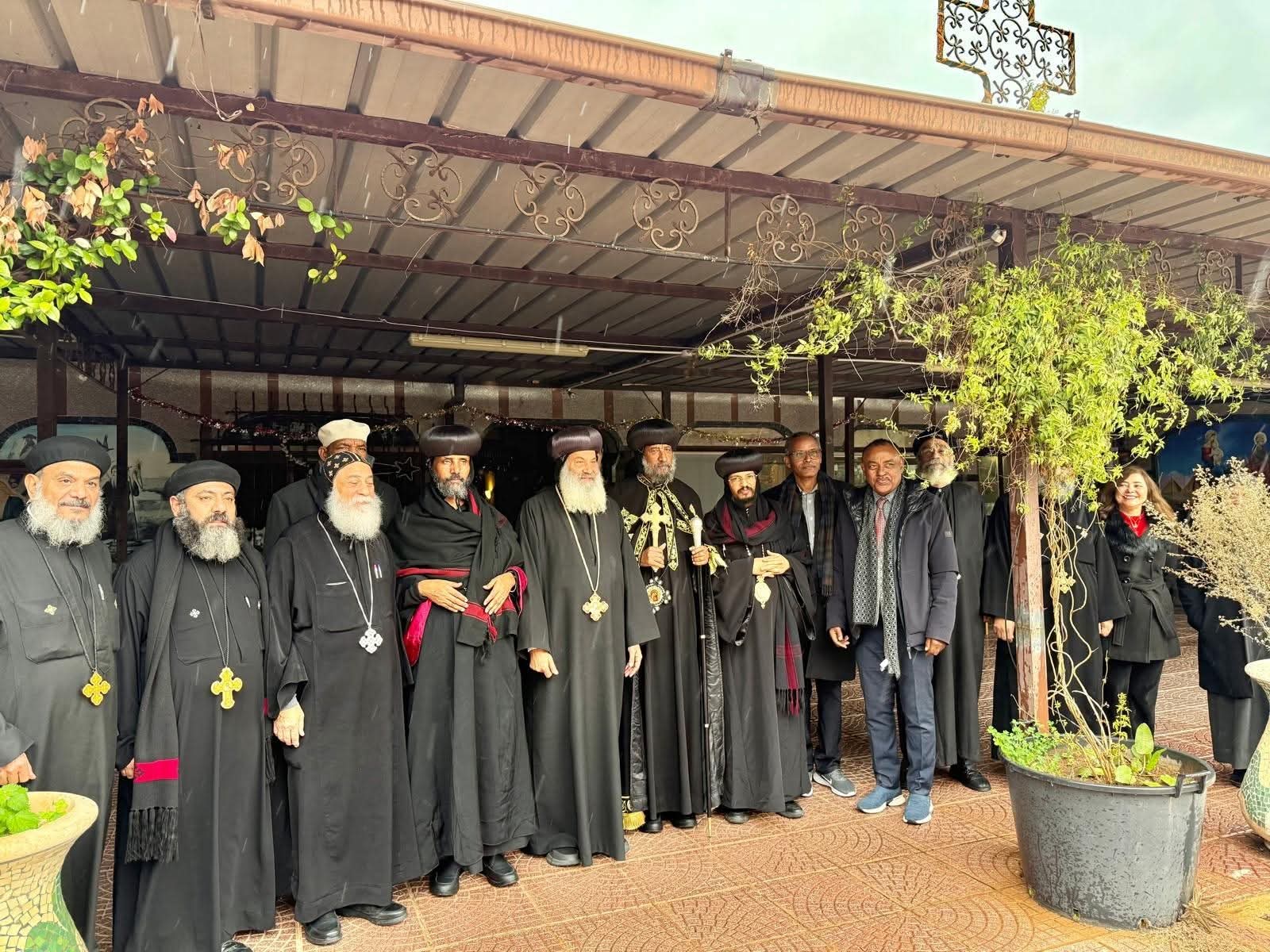 حيث قدم نيافته التهنئة للواء خالد شعيب محافظ مطروح، والقيادات الأمنية والعسكرية والتنفيذية والدينية والمحلية.