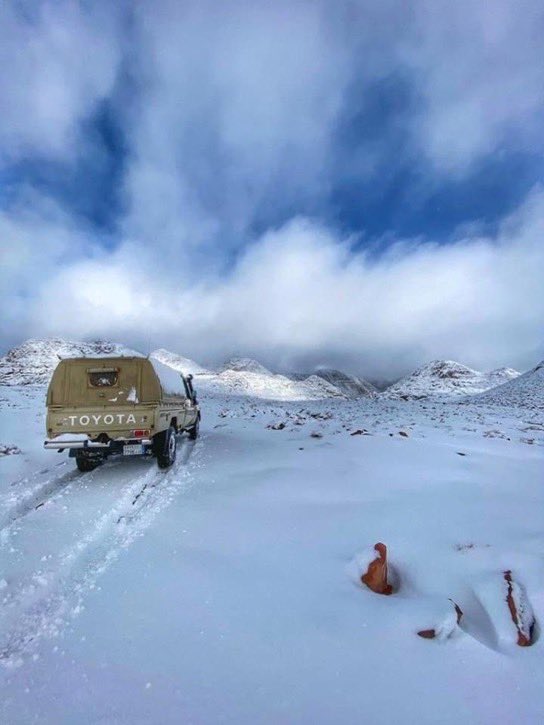شهدت مناطق متفرقة من حائل وتبوك في المملكة العربية السعودية تساقطًا للثلوج، شمل عددًا من المرتفعات والقمم الجبلية، في مشهد شتوي لافت.