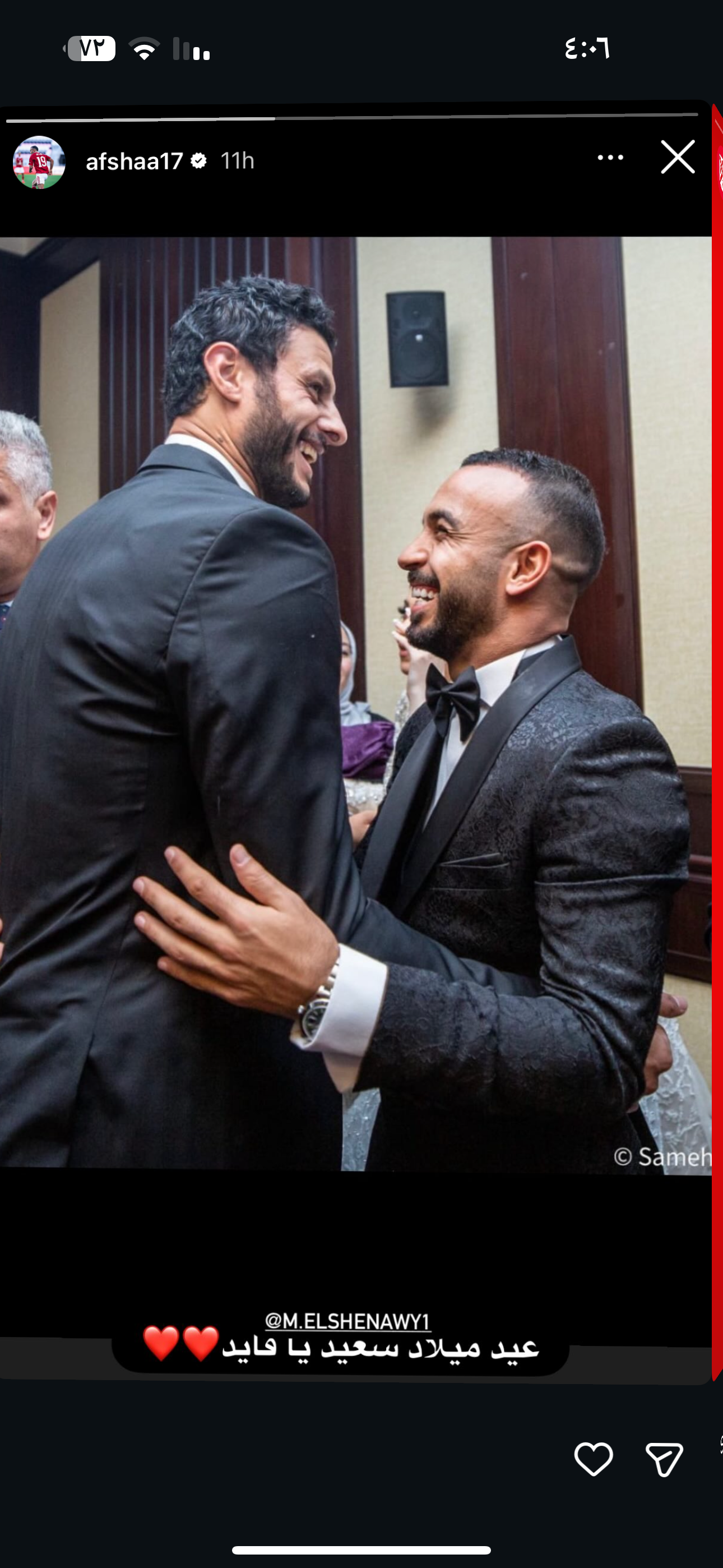 ونشر افشه صورة تجمعه مع الشناوي عبر الانستجرام وكتب: عيد ميلاد سعيد ياقائد