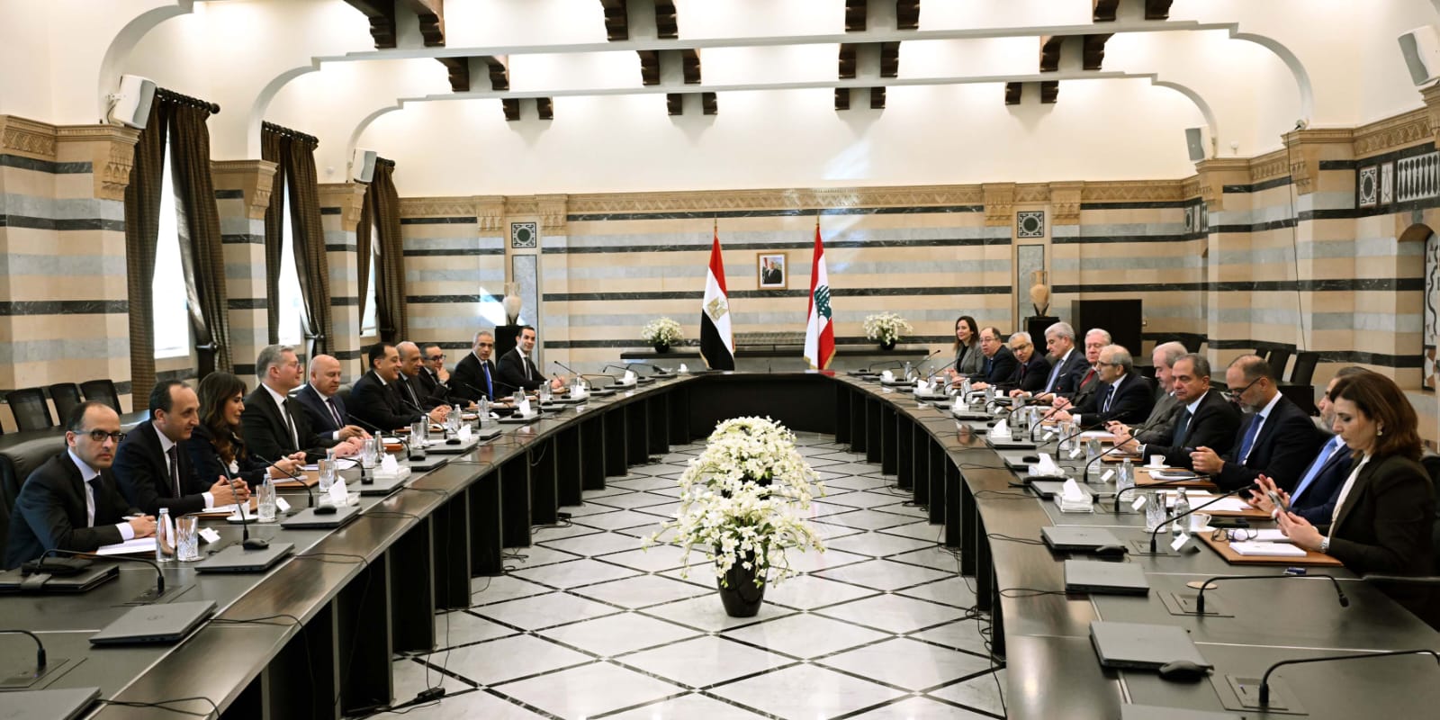 بدأت منذ قليل جلسة مباحثات موسعة برئاسة الدكتور نواف سلام رئيس الوزراء اللبناني، والدكتور مصطفى مدبولي رئيس مجلس الوزراء بمقر السراي الحكومي،ببيروت لبحث ملفات تعزيز التعاون المُشترك والقضايا الإقليمية بحضور وفدي البلدين.