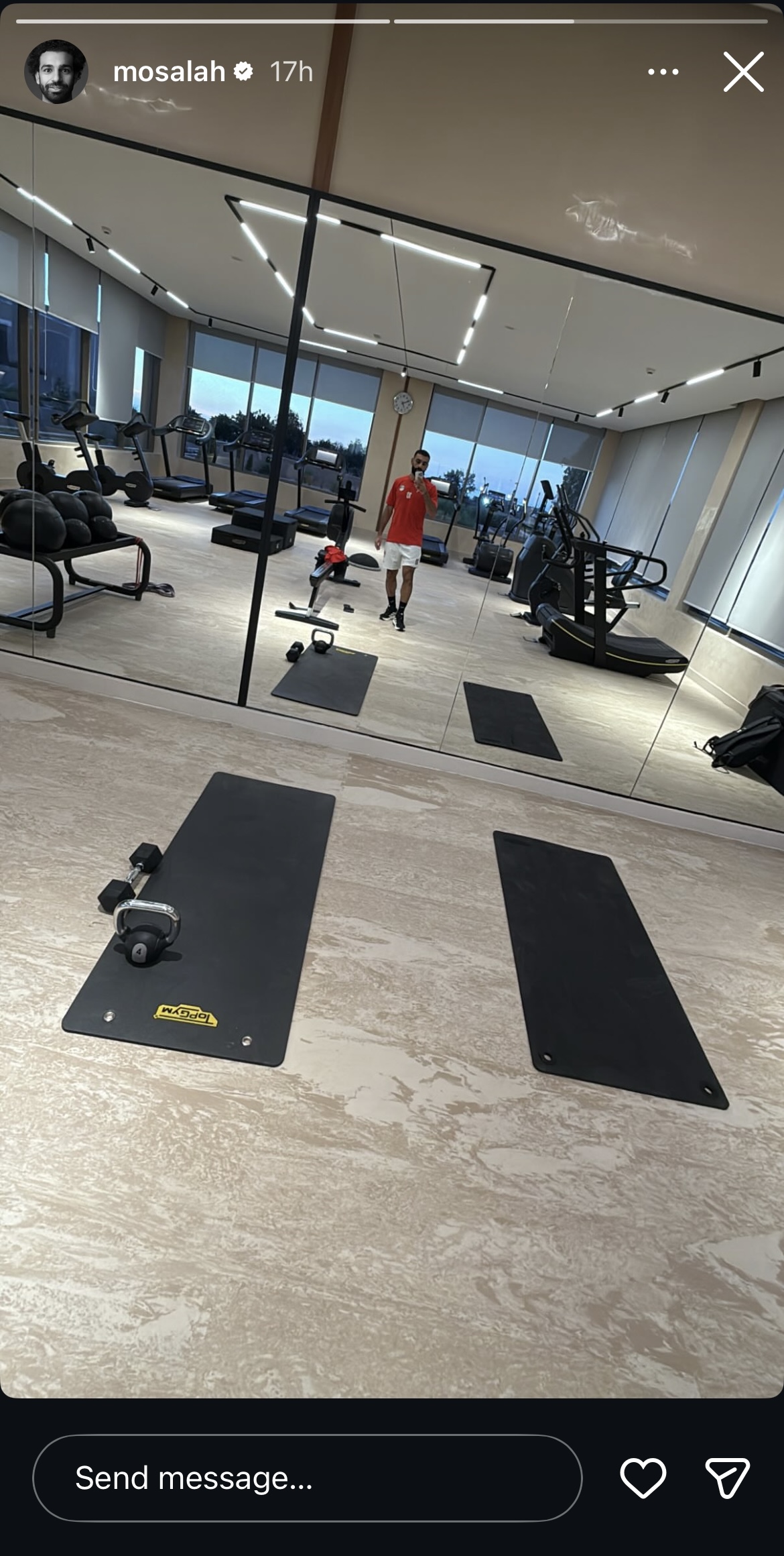 وظهر محمد صلاح من صالة الچيم بقميص منتخب مصر أثناء الاستعداد لأمم افريقيا.