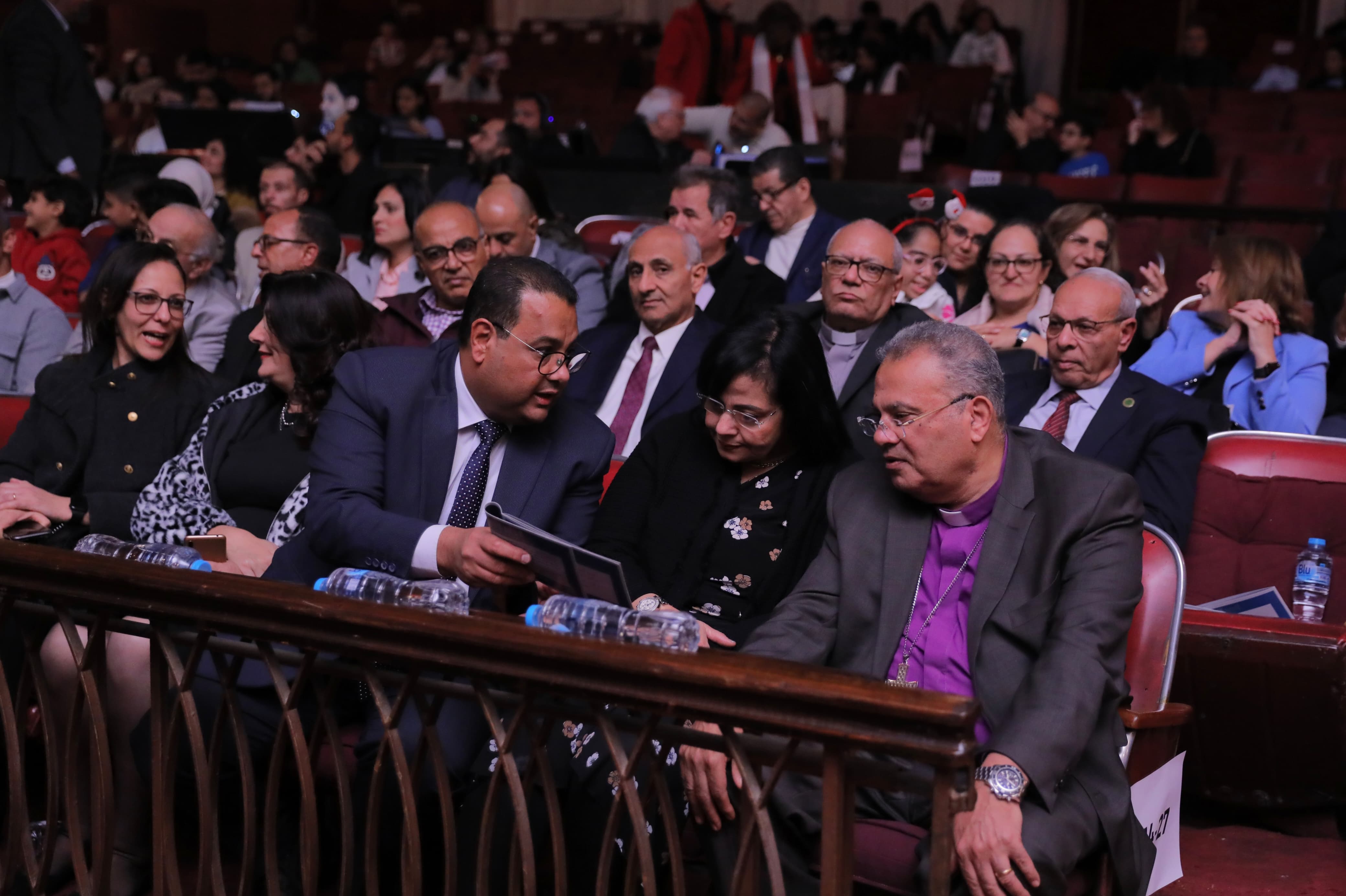 شهد الدكتور القس أندريه زكي، رئيس الطائفة الإنجيلية بمصر، بمشاركة الشيخ عصام عطية، رئيس هيئة الخدمة الروحية وتدريب القادة، وحضور عدد من قيادات الطائفة الإنجيلية بمصر، العرض المسرحي «الميلاد»، الذي نظمته هيئة الخدمة الروحية وتدريب القادة بالتعاون مع المسرح الغنائي المصري، احتفالًا بعيد الميلاد المجيد، على مسرح قصر النيل بوسط البلد.