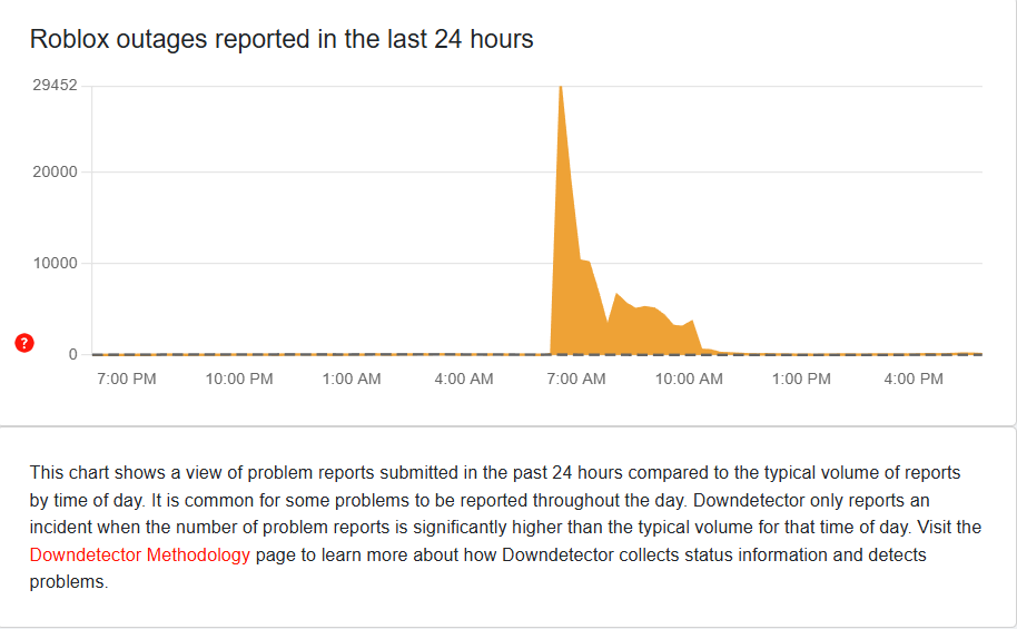وأفاد حوالي نصف هؤلاء المستخدمين بعدم قدرتهم على دخول موقع Roblox، بينما واجه اللاعبون رسائل خطأ وظهور "رمز الخطأ 9007"، ما منعهم من تسجيل الدخول أو الانضمام إلى الألعاب.