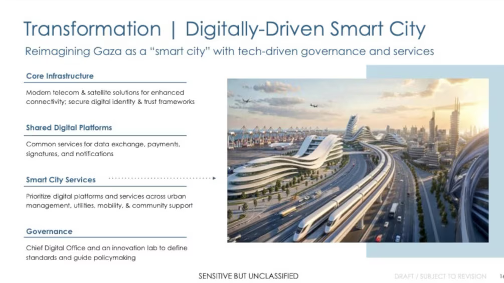 كشفت تقارير إعلامية غربية عن طرح الإدارة الأمريكية، بقيادة الرئيس دونالد ترامب، مبادرة تحمل اسم «مشروع شروق الشمس»، تهدف – وفق الرؤية الأمريكية – إلى إعادة إعمار قطاع غزة وتحويله إلى مدينة ساحلية متطورة تعتمد على التكنولوجيا الحديثة والبنية التحتية الذكية، في ما وصف بأنه تصور «من الخيام إلى الأبراج السكنية الفاخرة».
