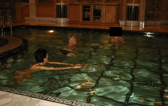 في صور نُشرت يوم الجمعة، يظهر كلينتون في حوض سباحة مع ماكسويل وشخص آخر مُغطى وجهه.