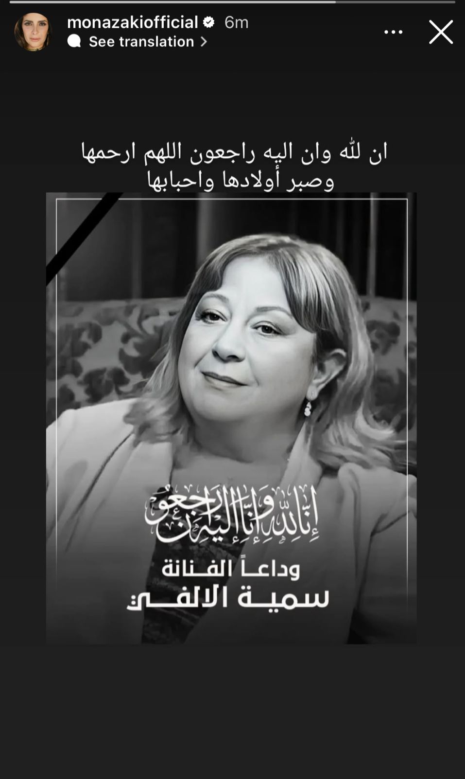 وكتبت منى زكي، عبر ستوري حسابها على “إنستجرام”: “إنا لله وإنا إليه راجعون.. اللهم ارحمها وصبر أولادها وأحبابها”.