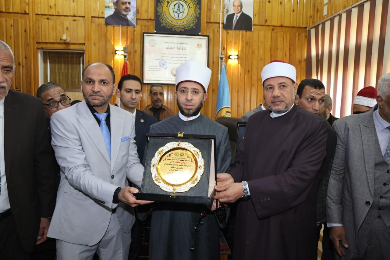 وفي ختام الزيارة، أهدى عميد كلية أصول الدين بأسيوط درع الكلية لوزير الأوقاف؛ تقديرًا لجهوده العلمية والدعوية.