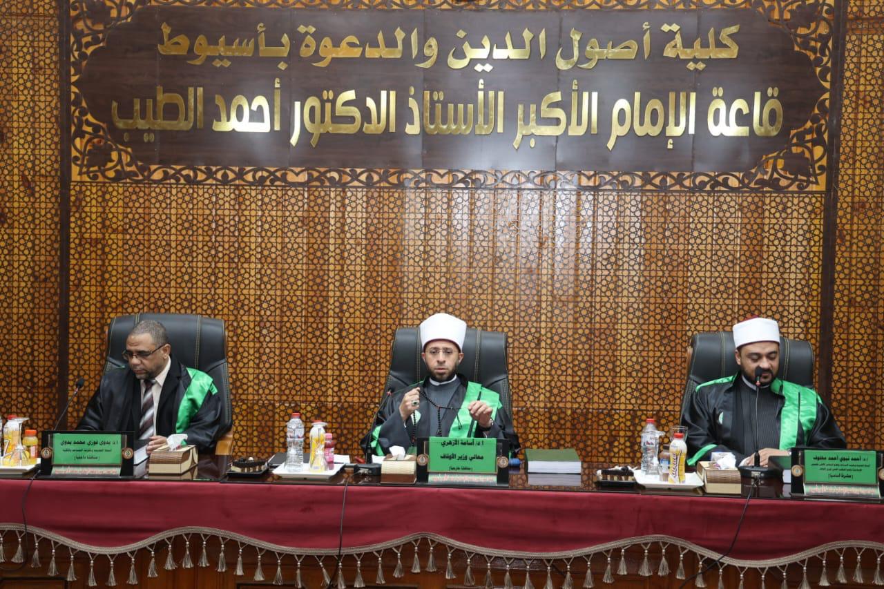 شارك الأستاذ الدكتور أسامة الأزهري - وزير الأوقاف، في مناقشة رسالة ماجستير بكلية أصول الدين والدعوة بجامعة الأزهر الشريف بأسيوط، للباحث أسامة حجاج حسني محمد علي، وذلك في إطار اهتمامه بدعم البحث العلمي الرصين، وتشجيع طلاب العلم والباحثين. جاءت الرسالة بعنوان: "محدثو مصر عبر القرون ومروياتهم (مرويات الحسن بن سفيان بن عامر الشيباني النسوي الخراساني المتوفى سنة ٣٠٣هـ من حديث: "أيما مؤمن استرسل إلى مؤمن فغبنه كان غبنه ذلك ربا" إلى حديث: "خير ما أعطي الإنسان خلق حسن"، جمعها من الكتب المسندة ودراستها وبيان العلل الموجودة فيها)".