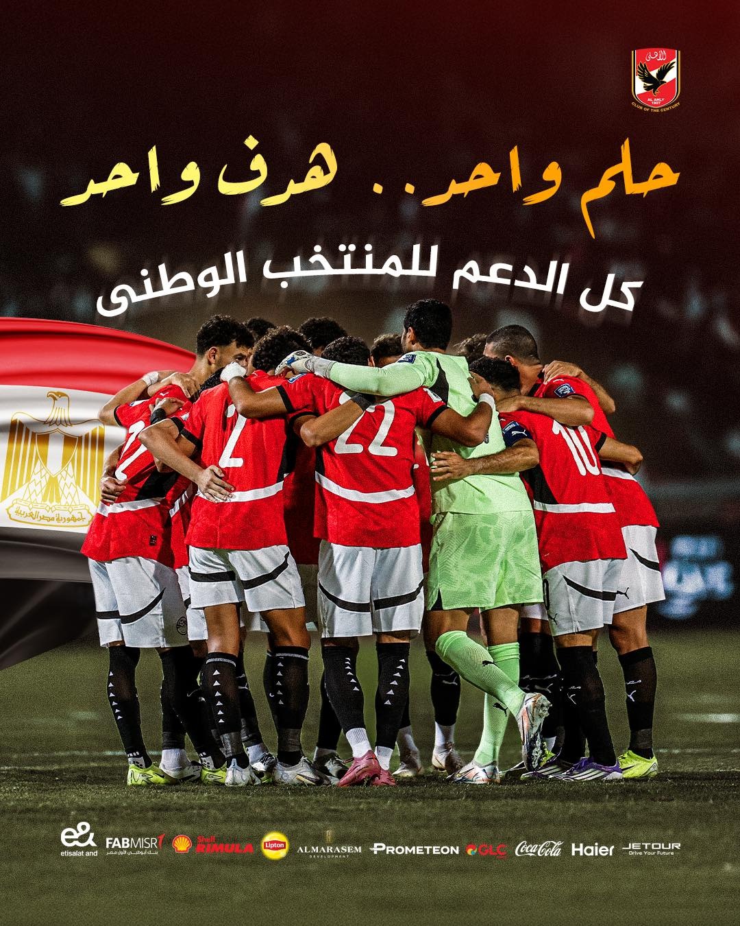 ونشرت الصفحة الرسمية للنادي الاهلي عبر حسابها فيس بوك" حلم واحد.. هدف واحد.. كل الدعم للمنتخب الوطن.