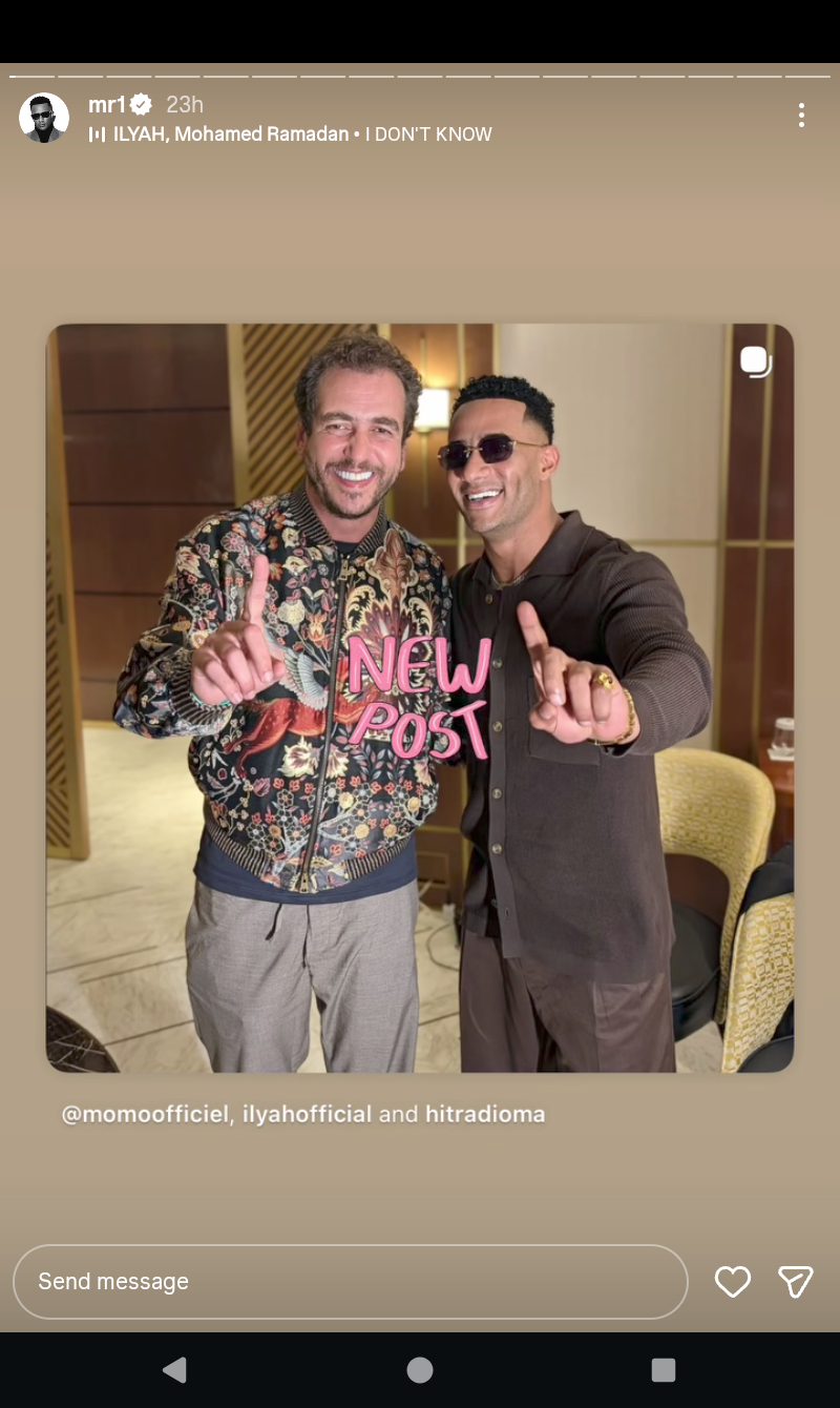 ونشر رمضان الصورة عبر صفحته على موقع التواصل الاجتماعي إنستجرام ، معلقا : رؤيتي لما اتمنى أن يسجله التاريخ باسمي بعد سنوات طويلة، متحدثًا عن طموحه في تحقيق العالمية دون التخلي عن جذوره، كما استعاد ذكرياته مع النجم الراحل عمر الشريف الذي شكل علامة فارقة في بداياته.