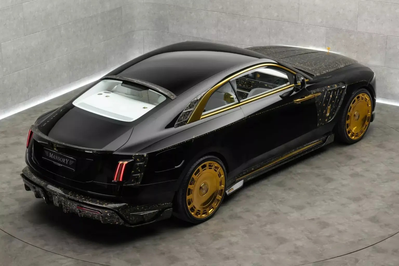 أبرز التغييرات بدأت من تمثال روح النشوة الشهير، الذي حصل على معالجة غير مسبوقة جعلته يظهر بلون ذهبي شفاف ينبعث منه بريق لافت، أقرب إلى عمل فني معاصر منه إلى شعار تقليدي، كما أعادت مانسوري تشكيل الشبك الأمامي الأيقوني لرولز رويس، ليظهر بالكامل بلمسة ذهبية تعكس الضوء وتمنح السيارة حضورًا فخمًا واستثنائيًا.