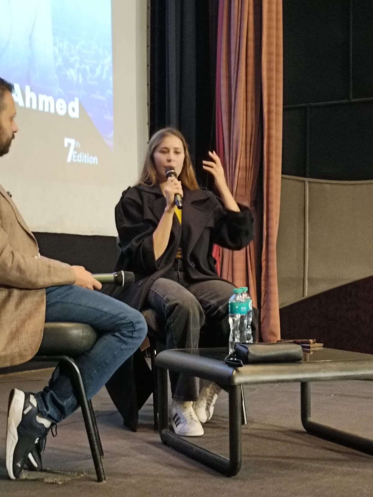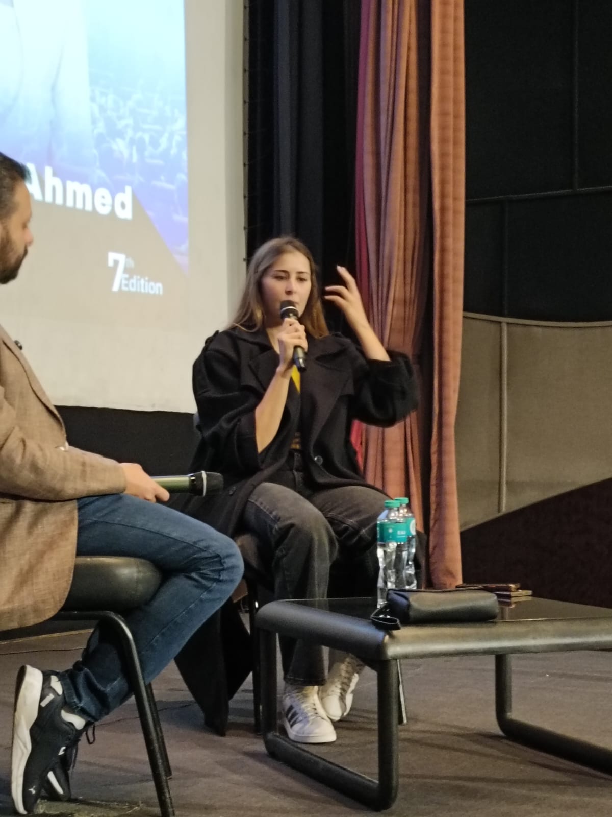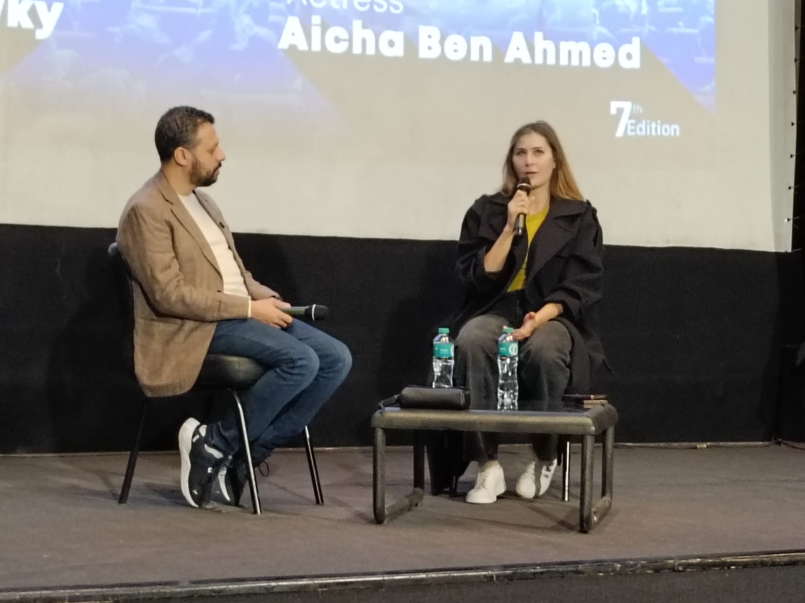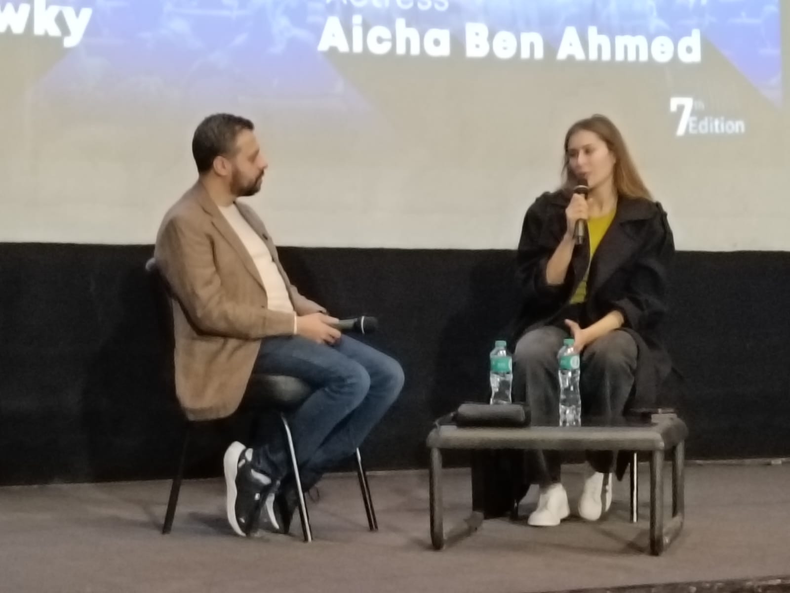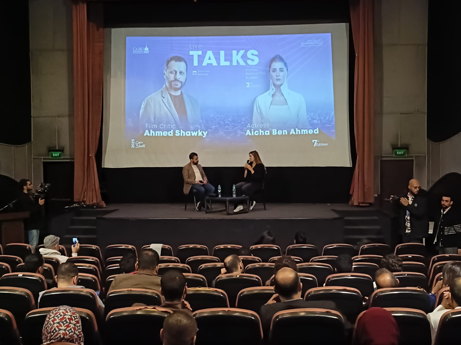 ضمن فعاليات الدورة السابعة من مهرجان القاهرة الدولي للفيلم القصير، استضاف مركز الإبداع الفني بدار الأوبرا المصرية حوارا مفتوحا جمع النجمة التونسية عائشة بن أحمد مع الناقد السينمائي أحمد شوقي، في لقاء إنساني وفني كشفت خلاله عن محطات مهمة في مسيرتها، وتفاصيل شخصية عن رحلتها بين تونس ومصر.