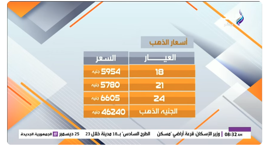 ويواصل برنامج «صباح البلد» تقديم متابعة يومية لأسعار الذهب، في إطار حرصه على إطلاع المشاهدين على أحدث التطورات الاقتصادية والأسعار في السوق المحلية.