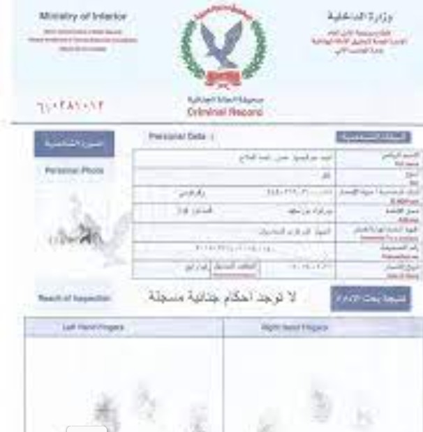 ـ سبق تسجيل البصمات العشرية لطالب إستخراج الصحيفة بقطاع الأحوال المدنية.