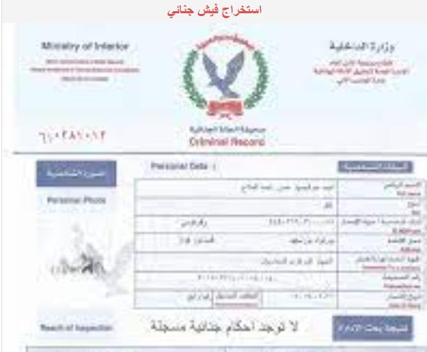يبحث عدد كبير من المواطنين عن خطوات استخراج صحيفة الحالة الجنائية «فيش جنائي» بدون التوجه الى قسم الشرطة والوقوف في طابور طويل، وهو ما استجابت له وزارة الداخلية، بإتاحة خدمة استخراج فيش وتشبيه مستعجل عبر موقعها الرسمي، لتسهيل الإجراءات على المواطنين وتوفير الوقت والجهد، دون الحاجة للتوجه إلى أقسام الشرطة، حيث تشهد الخدمة إقبالًا متزايدًا خاصة على الفيش المستعجل الذى يمكن الحصول عليه خلال 24 ساعة فقط.
