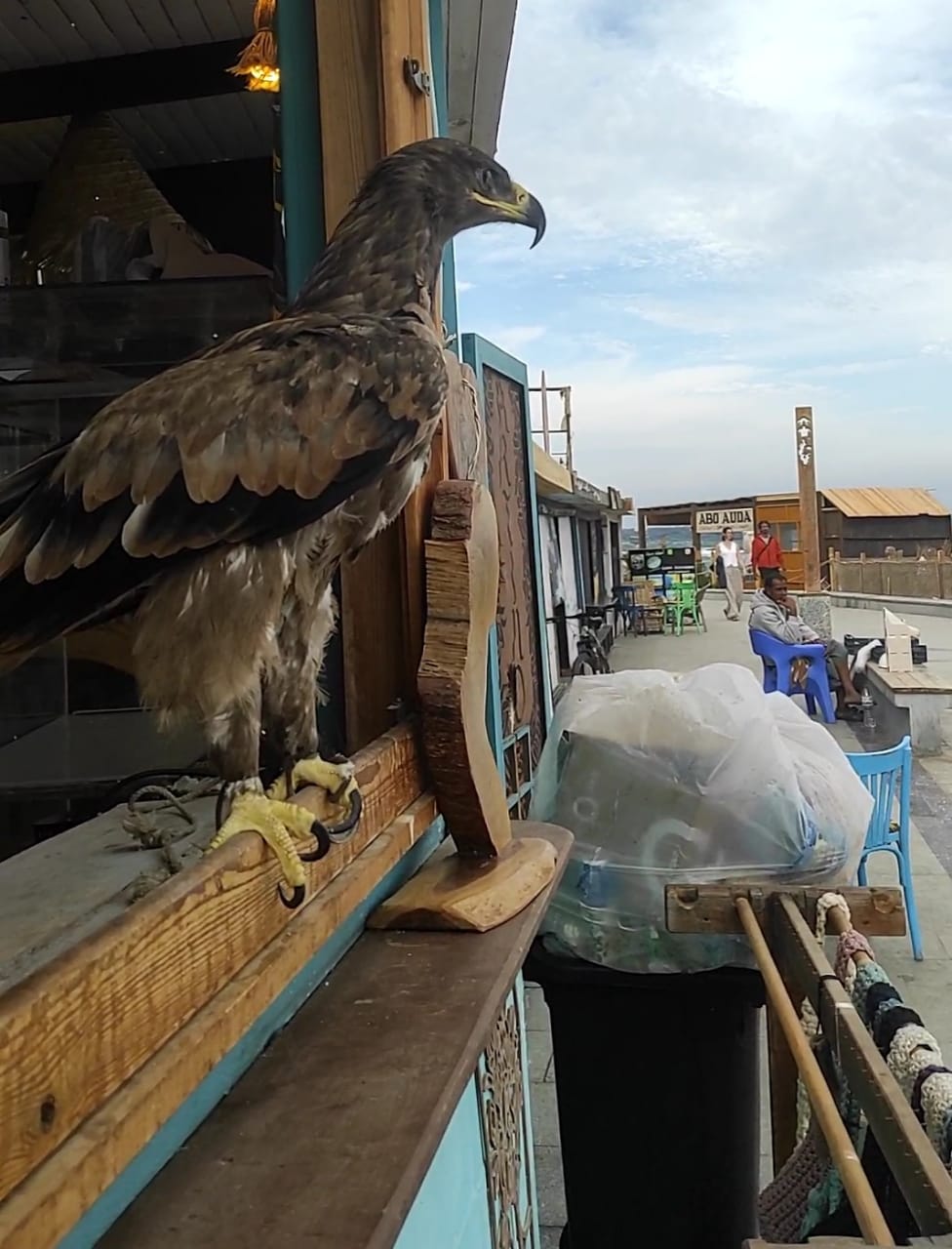 وفي مشهد لافت جذب اهتمام الزوار، رصدت كاميرا موقع «صدى البلد» الإخباري، بالصور والفيديو، ظهور نسر «العقاب الملكي الشرقي» على ممشى دهب السياحي، حيث بدا الطائر الجارح واقفًا في هدوء، يراقب المارة من السياح، في لوحة طبيعية نادرة أضفت بعدًا بيئيًا وسياحيًا مميزًا على المدينة.