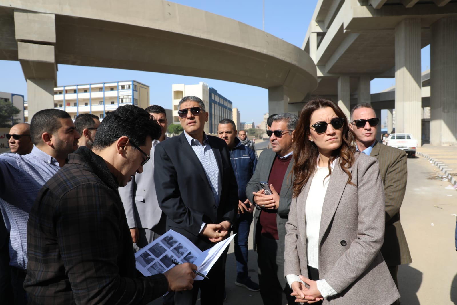 وشملت الجولة متابعة أعمال رصف وتطوير الطرق المحيطة ومن بينها شارعا مصطفى مشرفة والتحرير ورفع كفاءة طرق الخدمة أسفل المحاور والكباري وإنشاء أرصفة للمشاة.