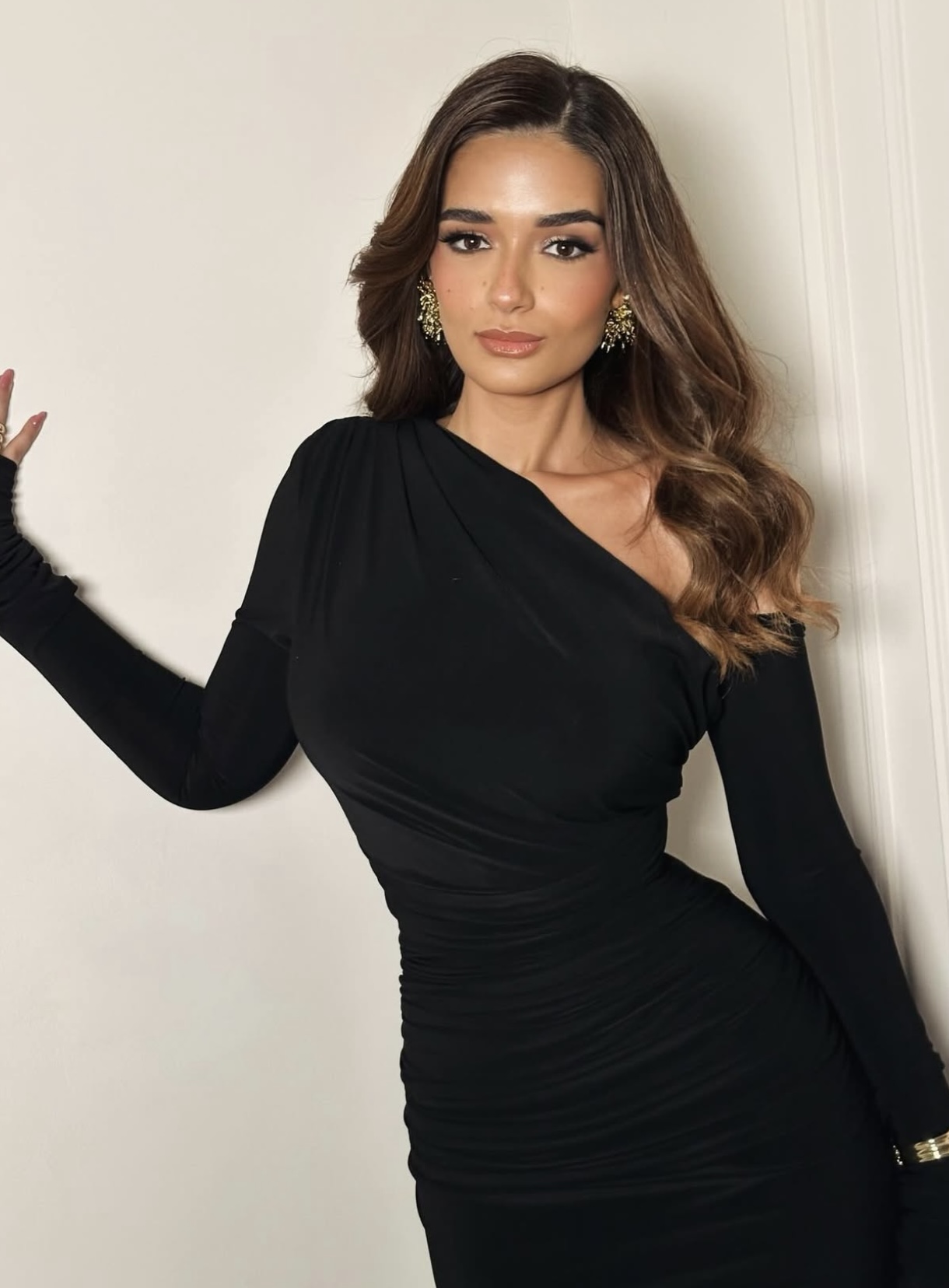 خطفت الفنانة ملك أحمد زاهر الأنظار بإطلالة أنيقة وجذابة خلال أحدث ظهور لها، حيث اختارت فستانًا أسود طويل بتصميم بسيط وفخم في الوقت نفسه.