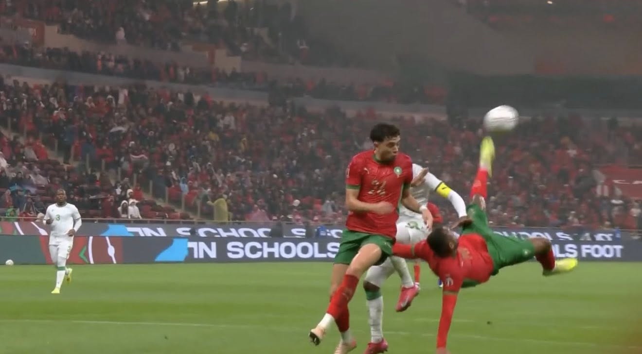 وسجل أيوب الكعبي الهدف الثاني في الدقيقة 74 من عمر اللقاء بكرة مقصية رائعة بعد تلقيه عرضية متقنة لتعلن عن الهدف الثاني لمنتخب المغرب بنتيجة 2-0.