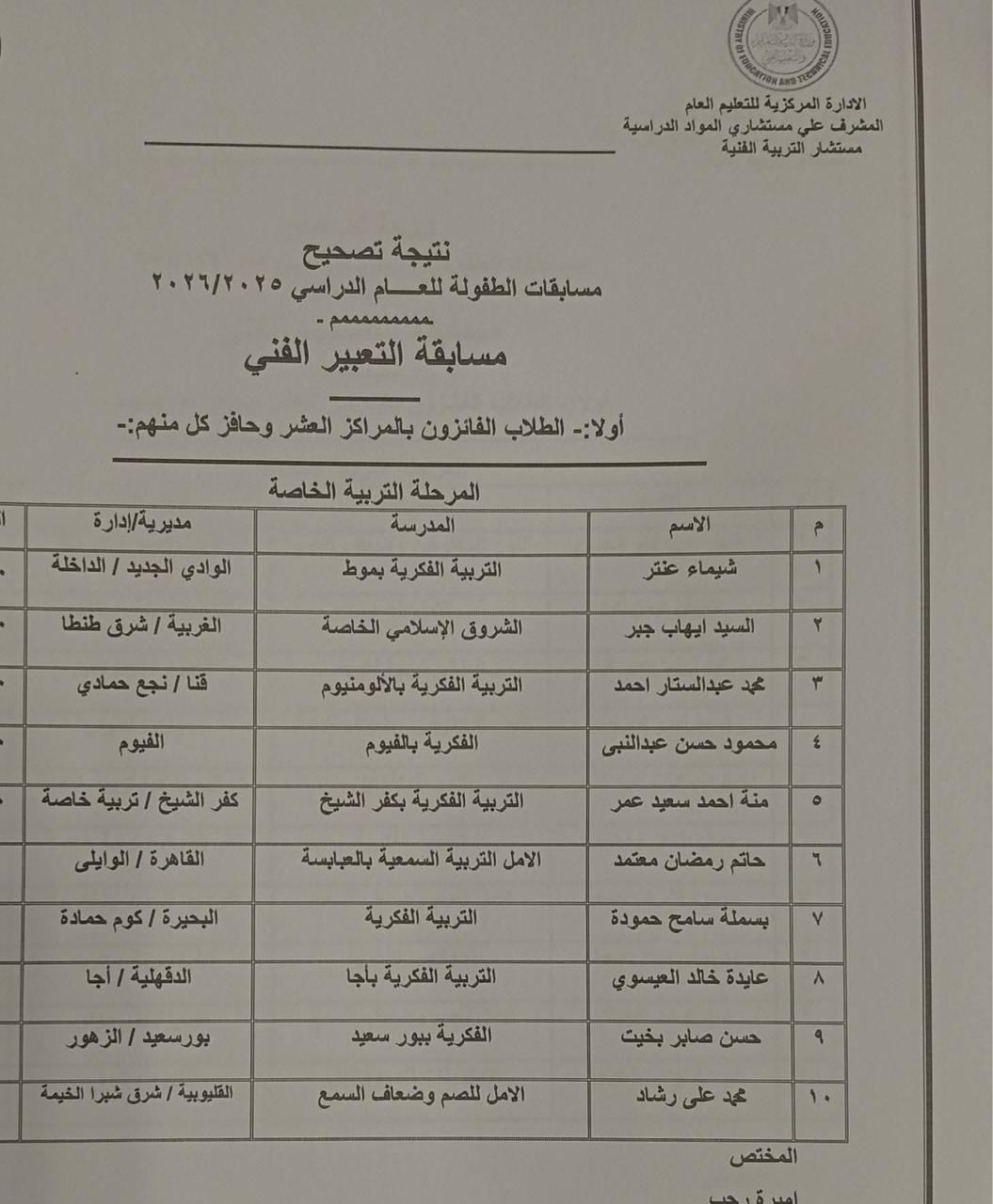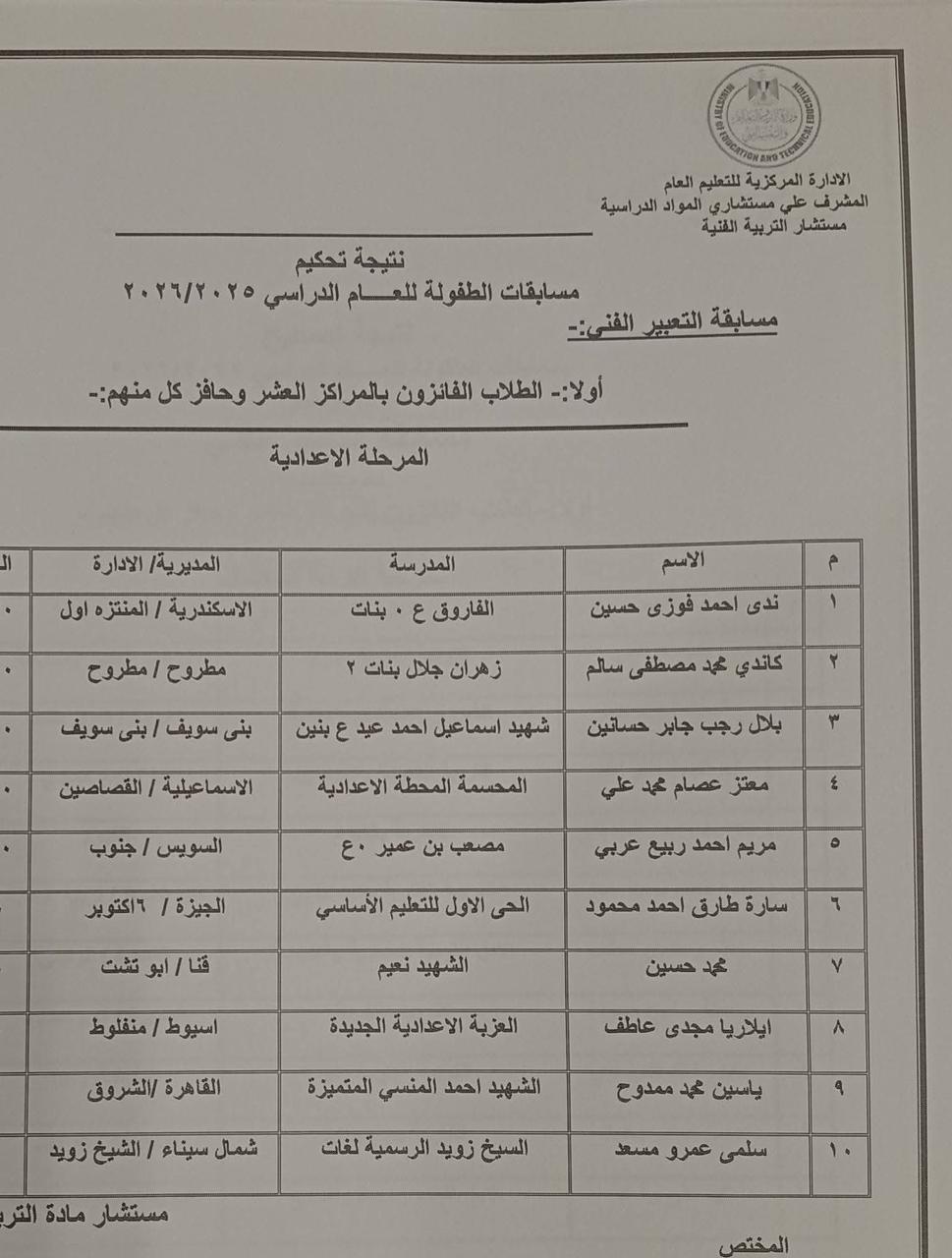 وأسفرت النتيجة، عن فوز الطالب محمد عبدالستار مدرسة التربية الفكرية التابعة لادارة نجع حمادى بالمركز الثالث "تربية خاصة" والطالب محمد حسين مدرسة الشهيد نعيم التابعة لإدارة أبو تشت التعليمية بالمركز السابع" المرحلة الإعدادية" فى مسابقة التعبير الفني.