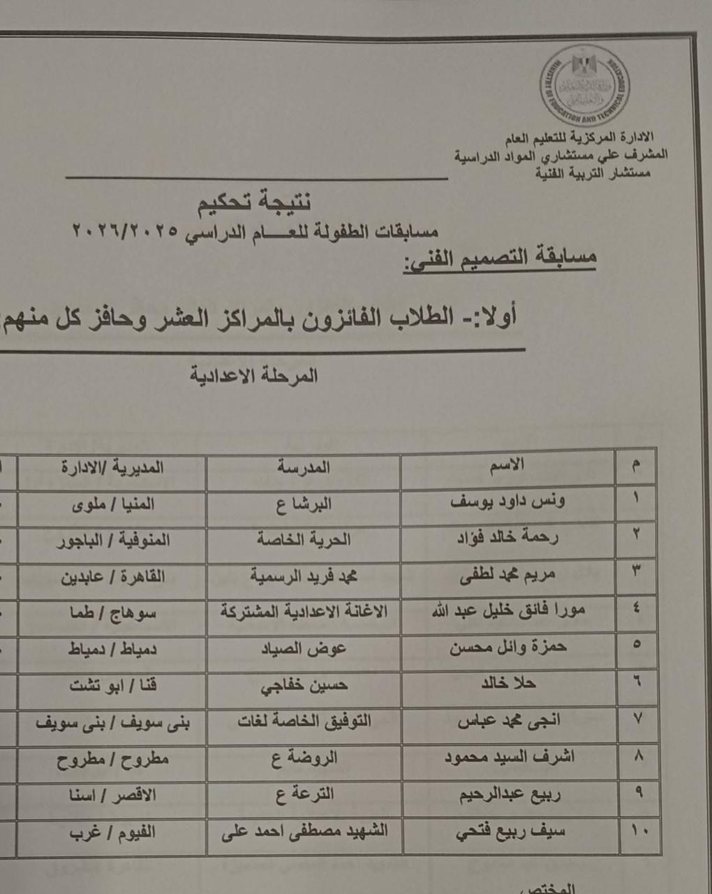 وهنأ وكيل وزارة التربية والتعليم بقنا، الطلاب الفائزين والمدارس والادارات التعليمية المشاركة، مقدماً الشكر والتقدير لقيادات تعليم قنا وفي مقدمتهم الدكتور وائل النجمى، مدير عام التعليم العام، وسوميه عبدالفتاح، مدير عام الشئون التنفيذية، وهانم محمود، موجه عام التربية الفنية، والدكتور عفت وزيرى، مدير عام إدارة نجع حمادى، وعبدالرؤوف عبدالواحد، مدير عام إدارة أبوتشت، وعرفات رشاد، موجه أول نجع حمادي، وجمعه رمضان سالم، موجه إدارة أبوتشت التعليمية.
