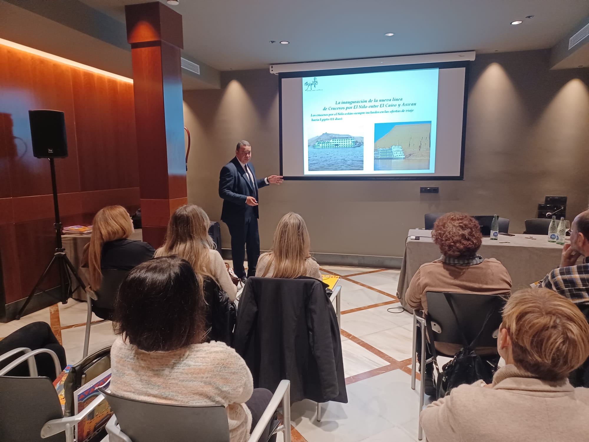 وخلال فعاليات القافلة السياحية، قدم ممثلو الهيئة عرضاً تقديمياً استعرضوا خلاله الوجهات السياحية الجديدة بالمقصد المصري مثل مدينة العلمين الجديدة بالإضافة إلى الوجهات الكلاسيكية، كما تم الحديث عن المنتجات السياحية المتنوعة بهذه الوجهات ومنها منتج السياحة النيلية لاسيما الرحلات النيلية الطويلة بين القاهرة وأسوان والتي تحظى بإعجاب السائح الإسباني.