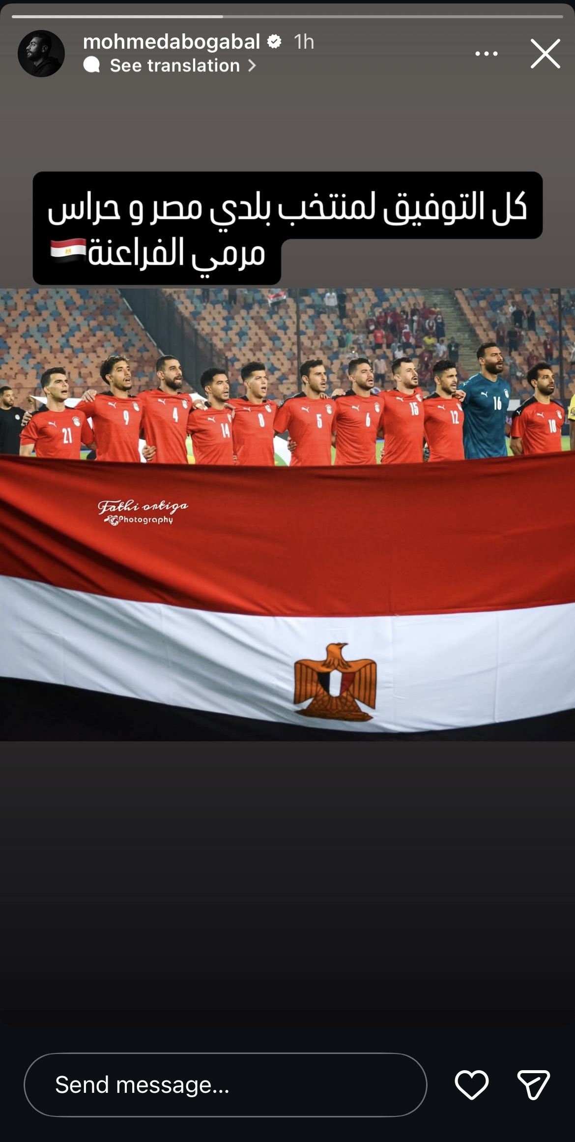 وكتب أبو جبل عبر حسابه على انستجرام: “كل التوفيق لمنتخب بلدي وحراس مرمى الفراعنة”.