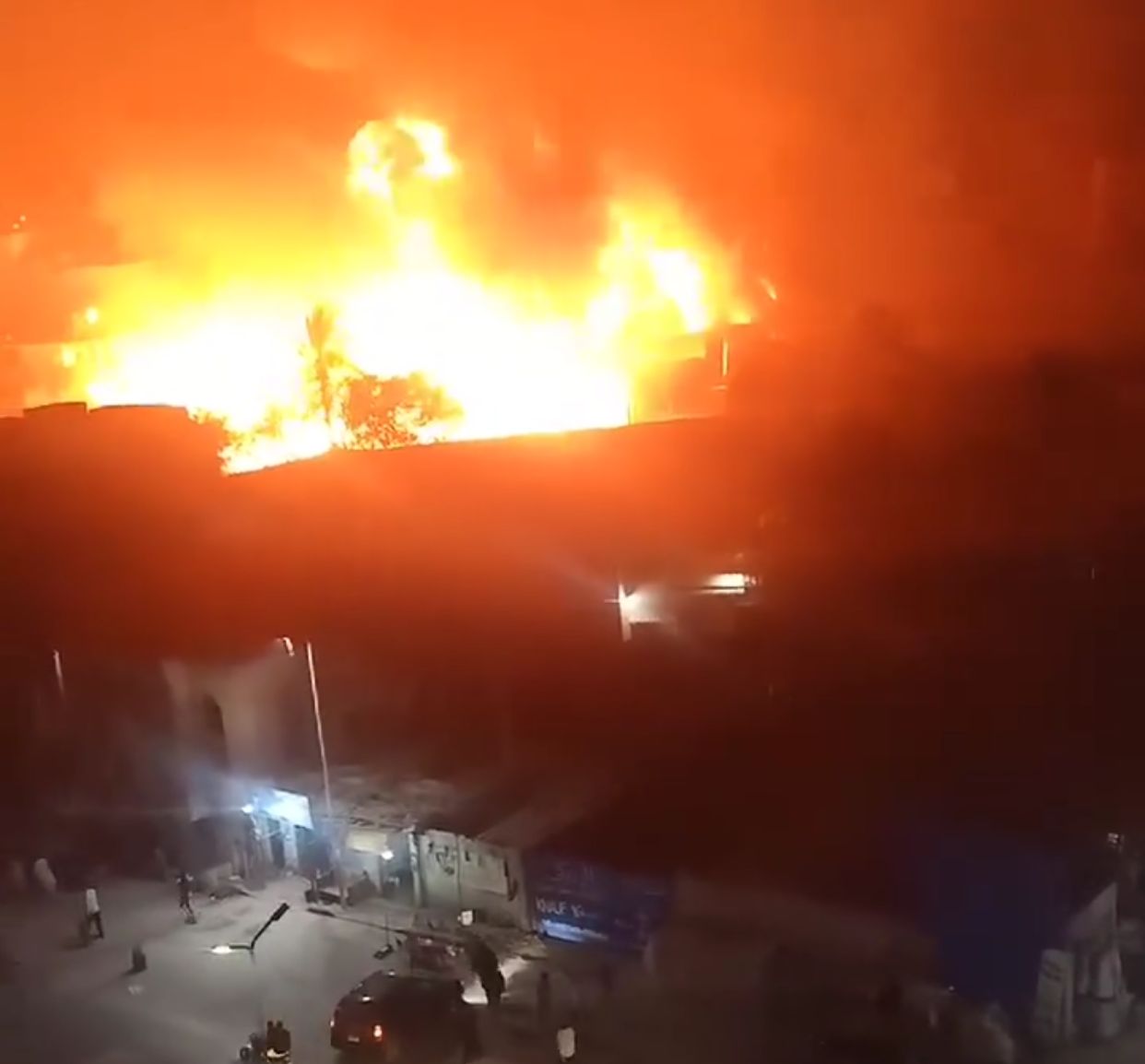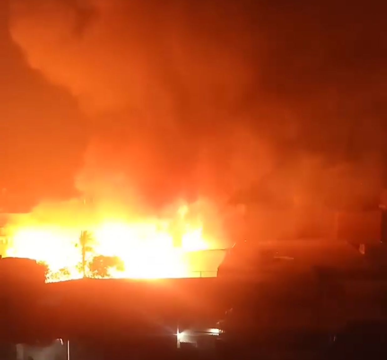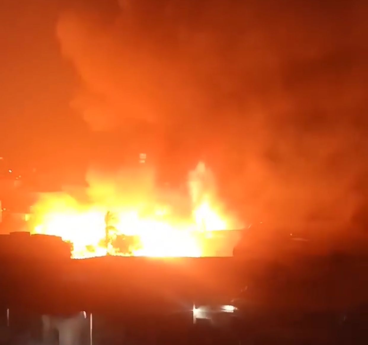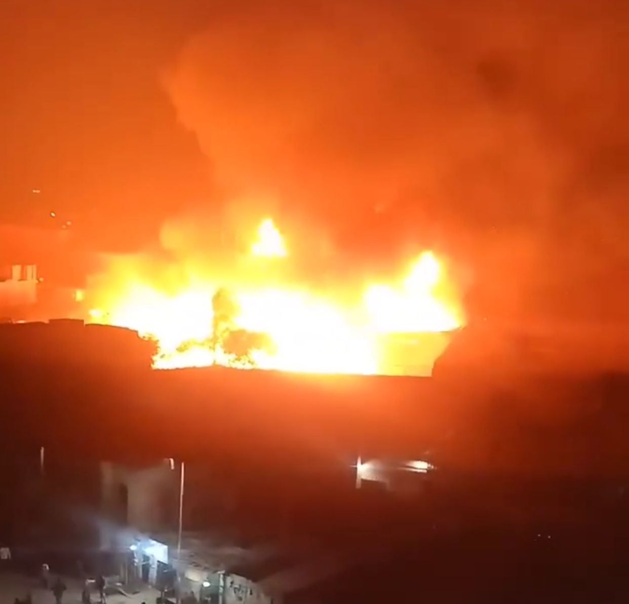 نشب حريق هائل داخل مخزن أخشاب في منطقة مؤسسة الزكاة بالمرج.