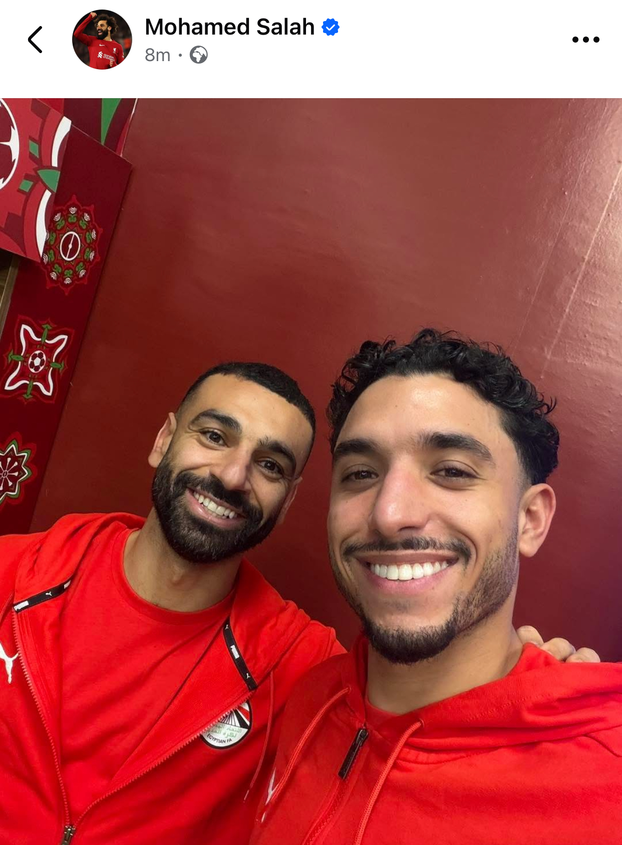 نشر النجم المصري محمد صلاح تجمعه بعمر مرموش عبر حسابه الشخصي بموقع فيسبوك، بعد احتفال المنتخب المصري على زيمبابوي في المباراة التي جمعت بينهما على ملعب أدرار بمدينة أغادير المغربية.