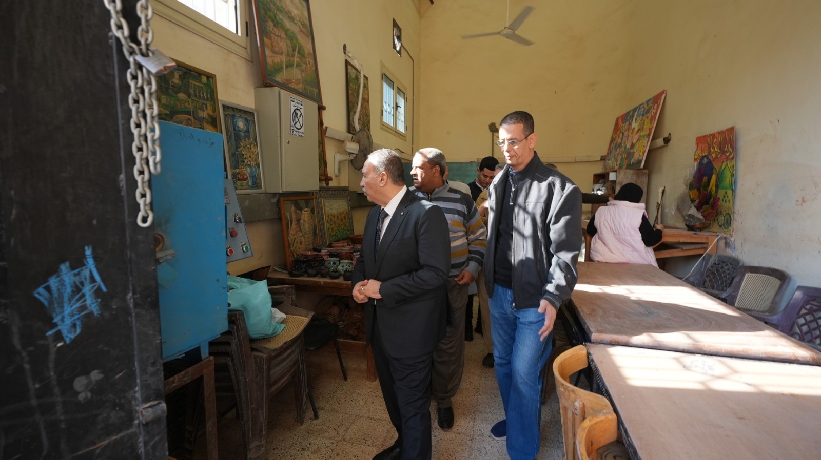 وشملت الجولة تفقد فرن الخزف ومشغل الحرف اليدوية، حيث أكد محافظ أسيوط أن صناعة الخزف من الحرف التراثية العريقة التي تتميز بها المحافظة، لما تحمله من قيمة فنية وثقافية تعكس عمق الحضارة المصرية، وشدد على أهمية الحفاظ على هذه الحرفة ودعم العاملين بها، مع تعظيم الاستفادة من إمكانات مشغل الخزف في تدريب النشء والشباب وصقل مهاراتهم.