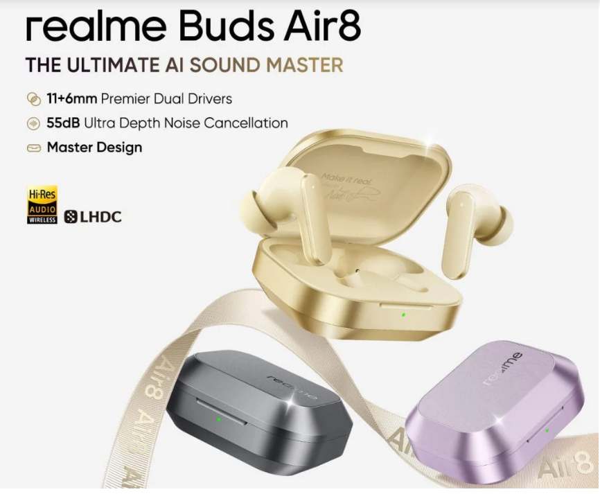 إضافةً إلى ذلك، تأتي سماعات Realme Buds Air 8 مزودة بتقنية Sound Master المدعومة بالذكاء الاصطناعي، وهي نظام يستخدم الذكاء الاصطناعي لتحسين التفاعلات الصوتية وضبط جودة الصوت حسب ما إذا كنت تستمع إلى الموسيقى أو تجري مكالمات.