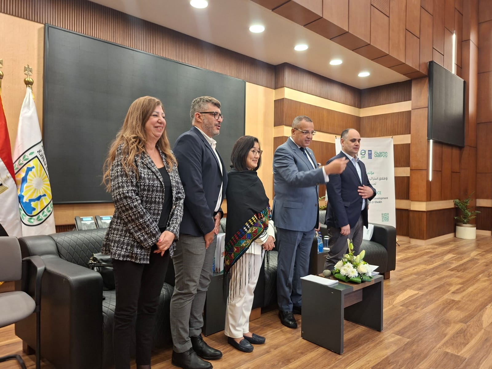 عقد اللواء دكتور خالد مبارك محافظ جنوب سيناء مؤتمر صحفي بمقر مجلس مدينة شرم الشيخ لإطلاق إستراتيجية التنمية المستدامة لمدينة شرم الشيخ بحضور تشيتوسي نوجوتشي الممثلة المقيمة لبرنامج الأمم المتحدة الإنمائي و الدكتور علي أبو سنة رئيس جهاز شؤون البيئة والدكتورة هدي الشوادفي نائب وزير البيئة، وذلك تأكيدا لمكانه شرم الشيخ كمدينة رائدة ونموذج إقليمي للمدن الساحلية المستدامة وبما يتماشى مع رؤية مصر 2030 وبمشاركة الشركاء الوطنيين والدوليين ويمثل هذا المؤتمر إطلاق بداية مرحلة جديدة من العمل المشترك نحو تعزيز الاستدامة كأول مدينة تفوز بإعداد إستراتيجية للتنمية المستدامة ودعم الإقتصاد الأخضر.