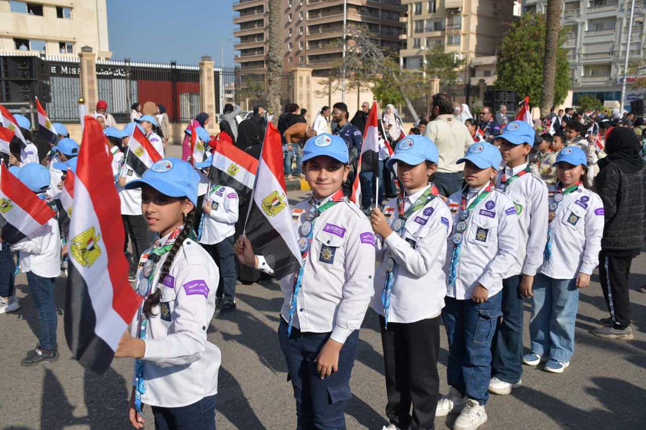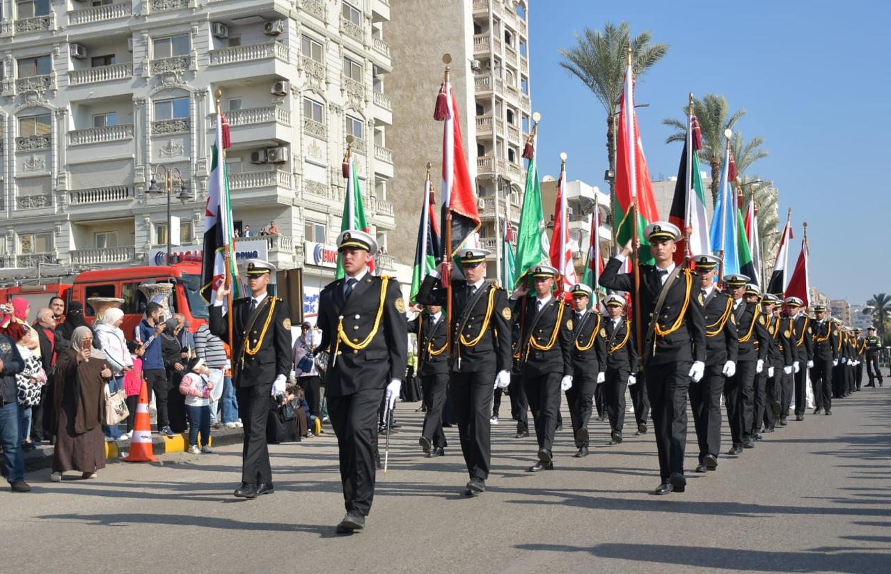 محافظ بورسعيد يشهد العرض العسكري والفني أمام ديوان المحافظة احتفالًا بالذكرى الـ69 لعيد النصر