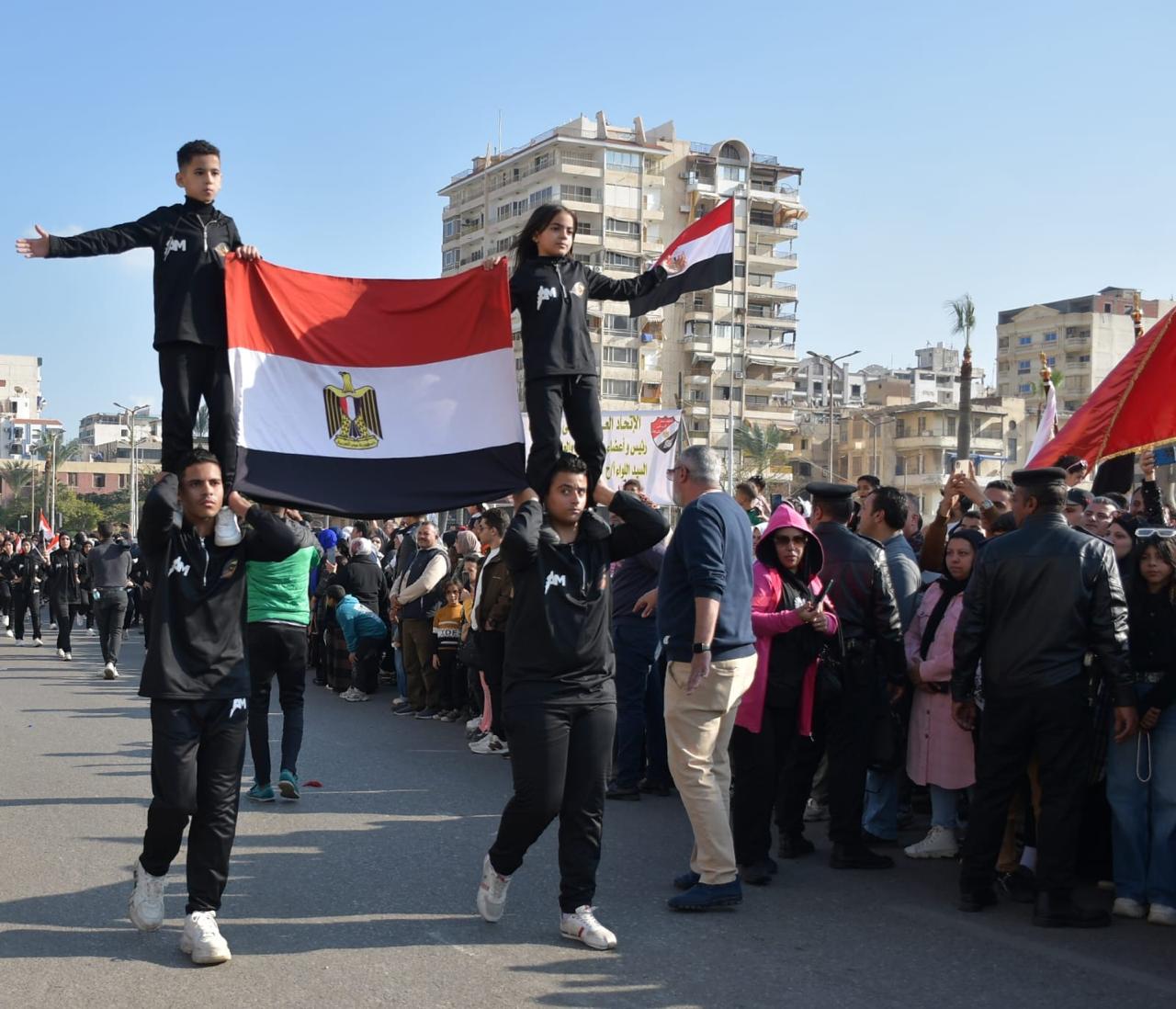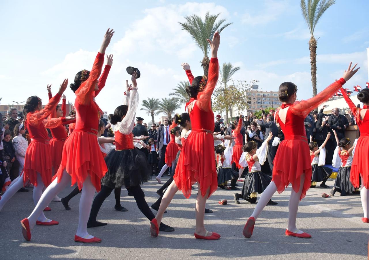 وتقدم العرض تشكيلات من قوات الأمن، وفرق المرور والنجدة، وسيارات الدفاع المدني، إلى جانب طلاب المدارس العسكرية، وحملة الأعلام من طلاب الجامعة وفضلًا عن مشاركة المديريات وعلى رأسها الفرق الفنية بمديرية الشباب والرياضة و سيارات الأحياء ومدينة بورفؤاد التي زُينت بالزهور والأعلام، في لوحات فنية عبرت عن فرحة أبناء بورسعيد بعيدهم القومي، و عبرت عن مشهد وطني متكامل جسد وحدة الصف وتلاحم مؤسسات الدولة. كما تضمن العرض فقرات فنية متميزة، شاركت خلالها فرق الفنون الشعبية، وفرقة بورسعيد الفنية، وبراعم مديرية الشباب والرياضة وعدد من فرق الفنون الشعبية من محافظات مختلفة